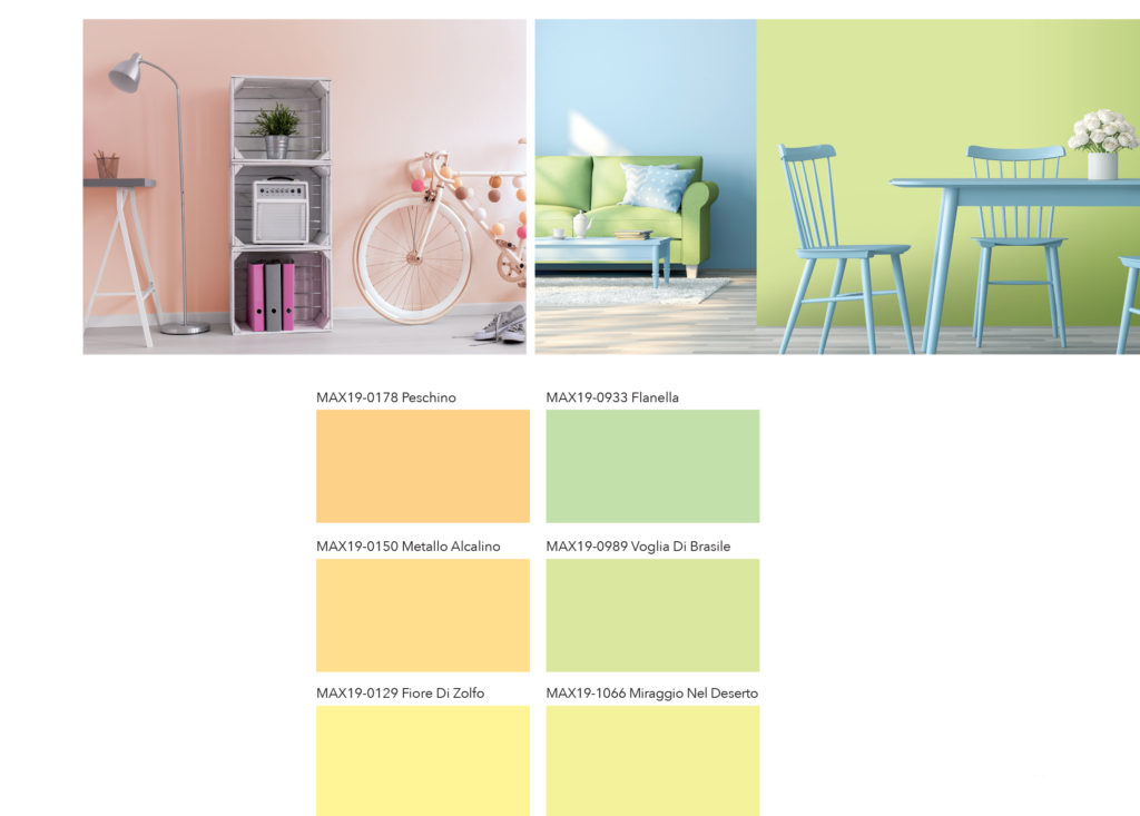 - Ispirazione: idee dell’ambiente che il cliente potrebbe creare sulla base di differenti aree cromatiche