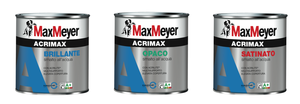Acrimax è lo smalto acrilico all’acqua multi supporto ed inodore di Maxmeyer che, grazie alla nuova formula, è oggi conforme a due importanti normative a tutela dell’ambiente, della salute delle persone e dell’igiene. È infatti utilizzabile in ambienti con presenza di alimenti secondo la normativa Haccp e ha un livello di emissione di sostanze volatili nell’ambiente (Cov) bassissimo, in categoria A+. Acrimax riduce così i rischi per l’ambiente e la salute di applicatori ed utilizzatori.