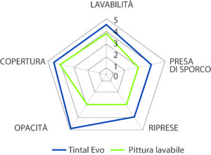 Analisi comparativa del laboratorio Cromology tra TintalEvo e una normale pittura lavabile.