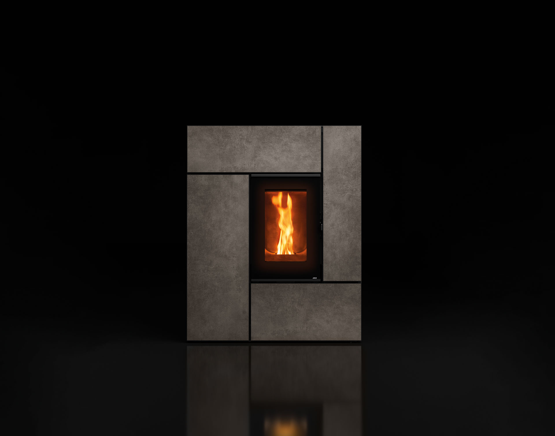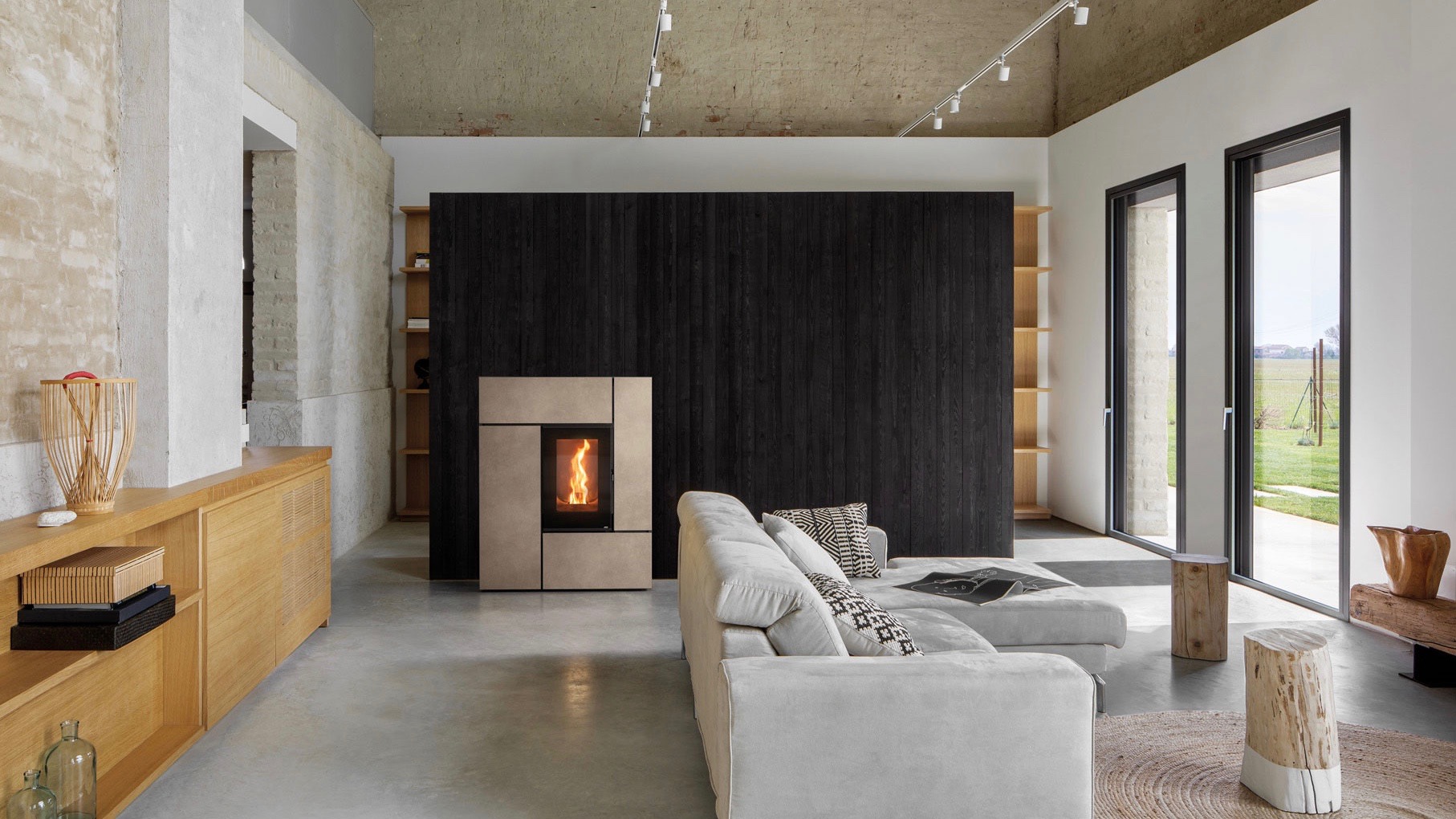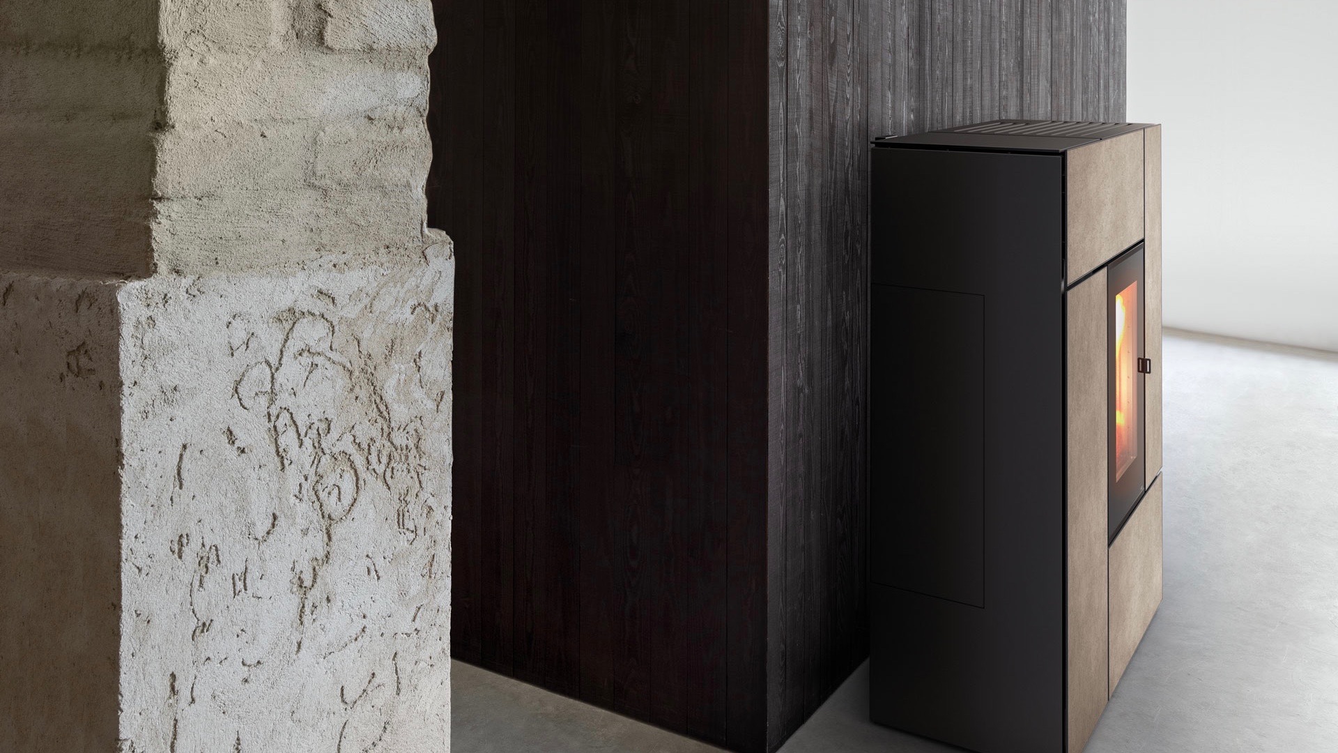 La stufa a pellet canalizzata di Mcz è disponibile in una varietà di finiture, tra cui il nuovo rivestimento Materia nei colori Corten, Piombo e Tortora, oltre al metallo Black. Per coloro che desiderano un tocco di personalità, è disponibile anche la versione Custom.