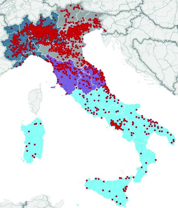 A parte la Lombardia, sono le regioni del Nord Est Centro (Nec) a rappresentare le aree a maggiore concentrazione di medie imprese.
