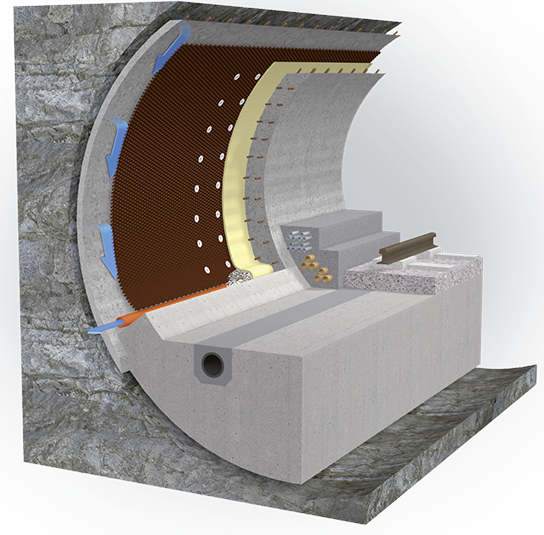 Resistenza alla compressione. Uno dei requisiti più importanti per garantire la longevità e l’affidabilità operativa di un tunnel è che le dannose infiltrazioni di acqua di falda siano tenute lontano dall’involucro interno e dallo spazio di circolazione del traffico. Specificamente sviluppata per rispondere a queste caratteristiche, Delta-At 1200/800 è una membrana drenante con estrema resistenza alla compressione, capacità di gestire grandi volumi di acqua e un potere drenante idoneo ad applicazioni ad alta esposizione come quello appunto del tunnel del San Gottardo.