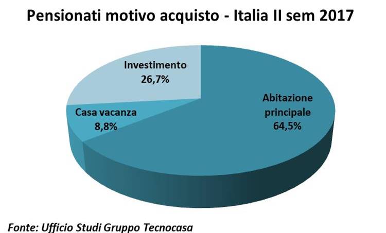 L’analisi delle compravendite realizzate attraverso le agenzie affiliate Tecnocasa e Tecnorete sul territorio nazionale nel secondo semestre del 2017 evidenzia che il 7,9% degli acquisti è stato effettuato da soggetti in pensione.