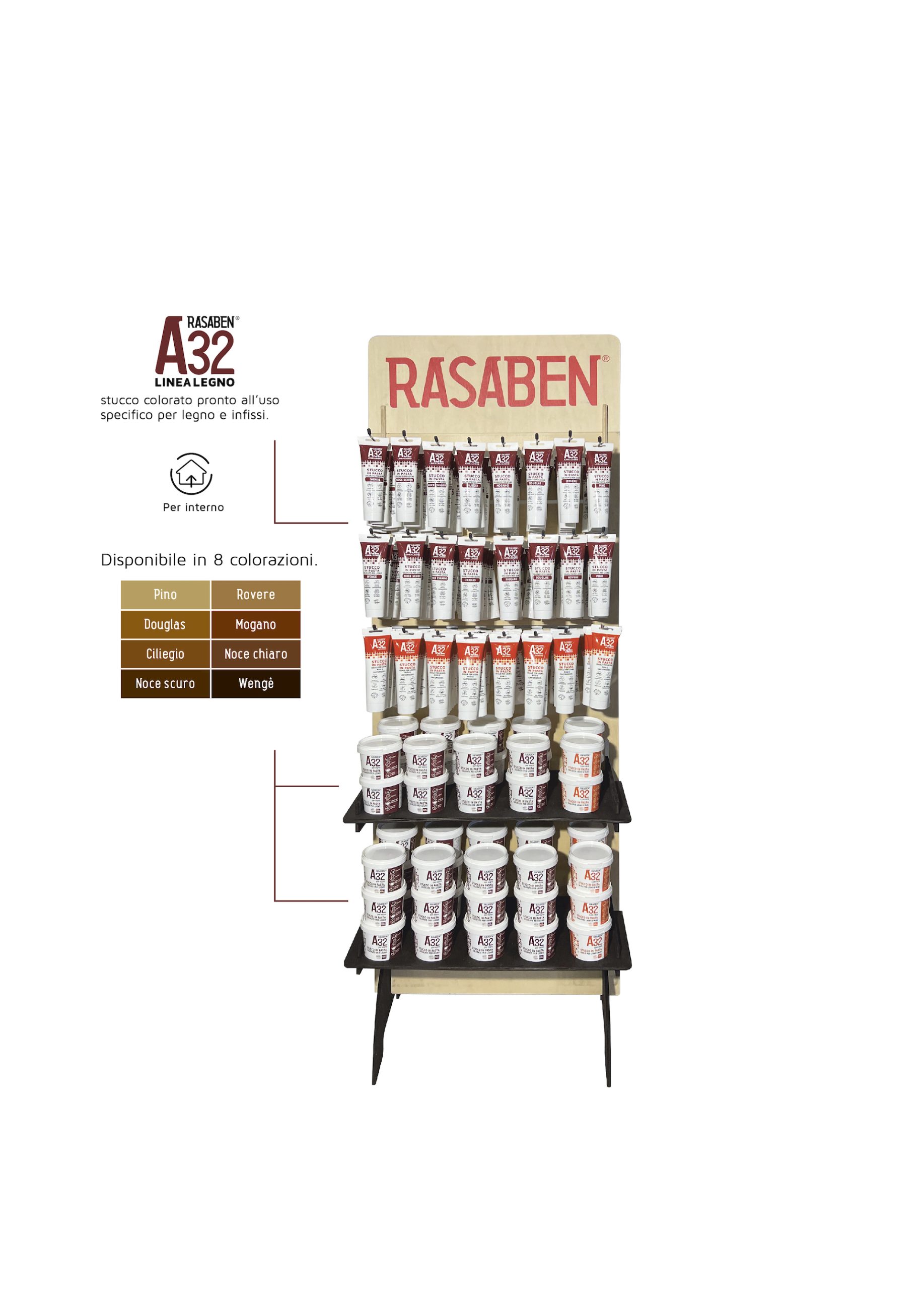 Rasaben A32 Legno è una scelta ideale per una vasta gamma di applicazioni. È perfetto per i progetti “fai da te”, consentendo ai creativi di dar libero sfogo alla loro inventiva e di effettuare piccole riparazioni o restauri in legno in modo efficace.