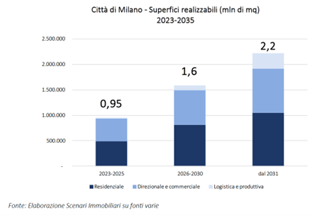 Gli ambiti di riqualificazione edilizia e di rigenerazione urbana della città di Milano interessano una superficie territoriale di circa 9,5 kmq e una superficie lorda pari a poco più di 5 milioni di metri quadrati, concentrata per poco meno della metà nel comparto residenziale (2,35 milioni di mq), per un terzo nel direzionale (1,5 milioni di mq) e per poco meno del 10 per cento in quello commerciale (460 mila mq). Si stima un impatto sul mercato immobiliare di circa 19,5 miliardi di euro di valore aggiunto concentrato per quasi il 60 per cento nel comparto residenziale.
