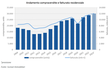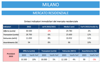 Nel 2023 nella città di Milano si prevede che saranno vendute trentamila case con una crescita del cinque per cento in un anno e di oltre il 15% sul 2019.
