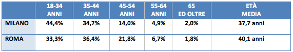 dove la concentrazione è maggiore è quella compresa tra 35 e 44 anni (che a Milano, invece, è del 34,7%).