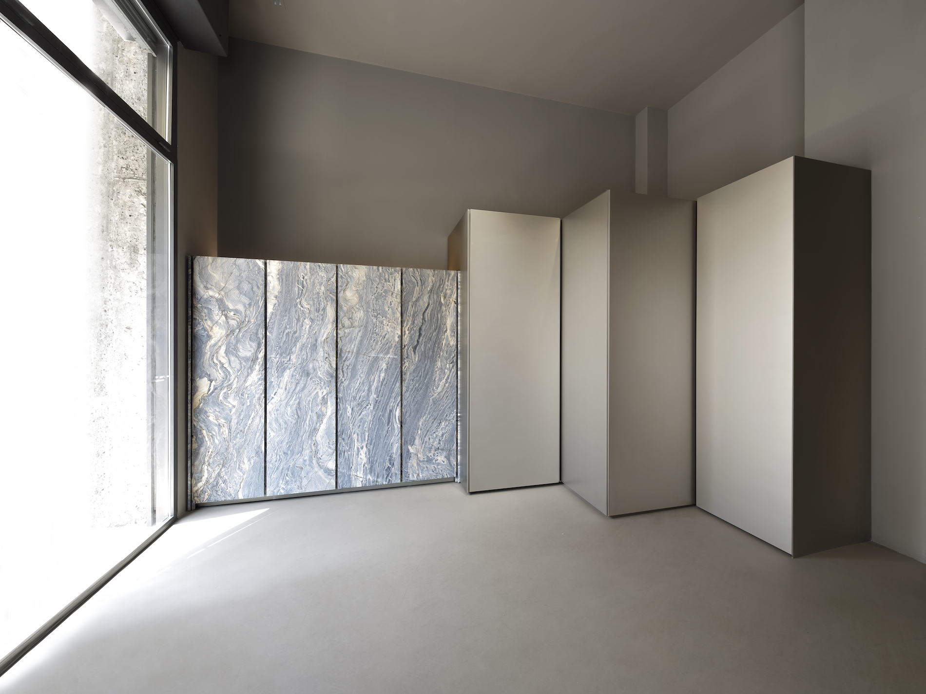 Un’interiorità svelata al dispiegarsi della parte centrale, che mette in mostra tutta la sua bellezza senza impedimenti. Le due ante scorrono sparendo completamente all’interno degli elementi laterali, aprendosi ad un nuovo spazio completamente accessibile con un movimento ammortizzato, fluido e privo di alcuna rumorosità.