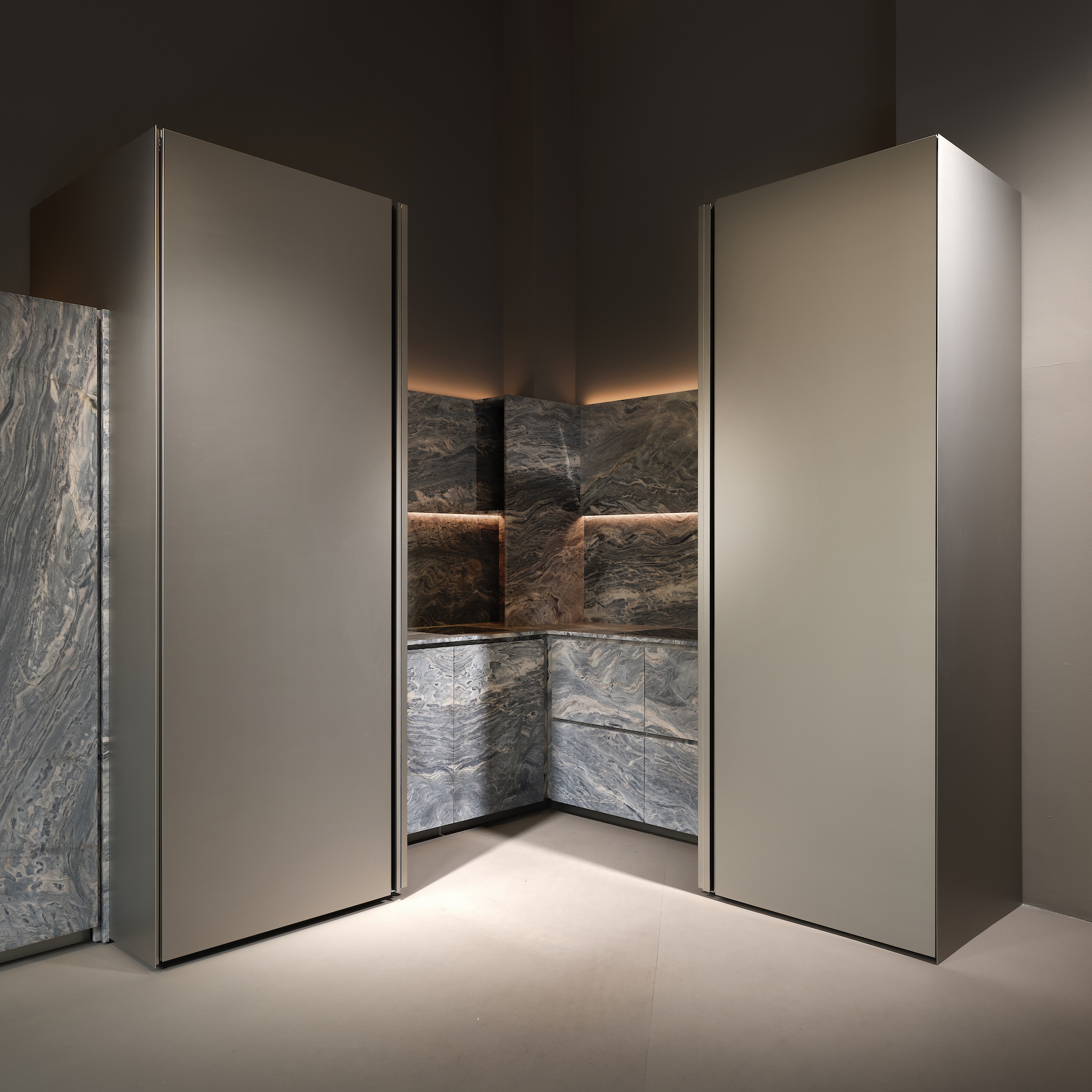 Gli Angoli Silenziosi è il nuovo progetto di minotticucine. L’Angolo, che si compone di una serie di colonne disposte “a scala”, oltre ad un valore compositivo, ha una valenza funzionale: con un semplice gesto le ante si chiudono sulla cucina come un sipario, portando nell’ambiente domestico il silenzio e l’ordine visivo.Le forme elementari e pure delle colonne ad angolo entrano in contrapposizione con l’unicità e la matericità che caratterizzano la cucina che l’Angolo cela al suo interno.