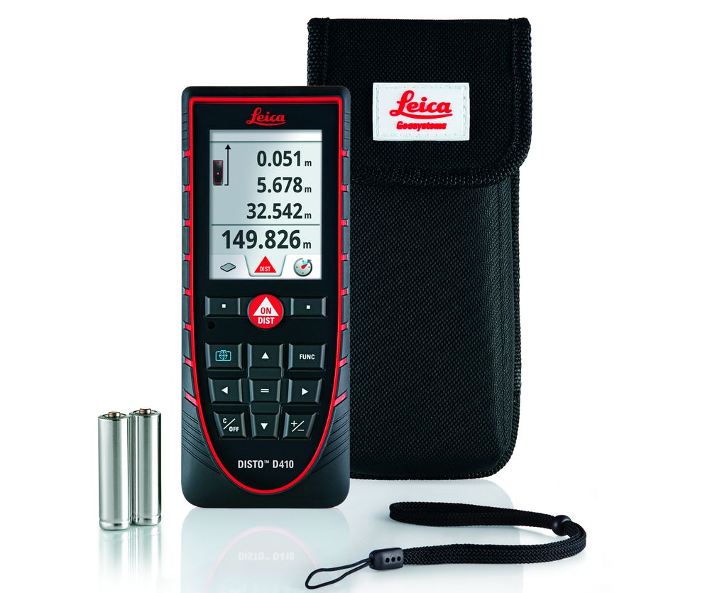 D410_SCOPE_OF_DELIEVERY.tif_c650230a1OLa custodia e la tastiera sono resistenti all’acqua e alla polvere e possono essere lavate sotto l’acqua corrente. Leica Disto D410 consente di ottenere ri­sultati di misura sempre affidabili, in tutte le condizioni atmosferiche. La portata e la precisione del Leica Disto D410 sono a norma Iso-16331-1. D410_measuring_long_distances_DE.tif_c650185a1OCiò significa che è possibile ottenere una grande portata di 150 metri e una precisione di ± 1 millimetri non soltanto nelle perfette condizioni di laboratorio, ma anche sul cantiere, negli impieghi quotidiani.