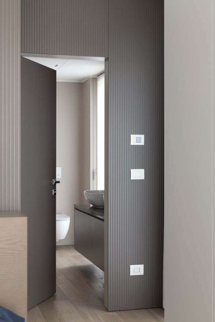 Oltre alle boiserie, Mo.1950 ha progettato gli arredi della zona bagno e altre componenti d’arredo, studiati per interpretare l’interior come una parte organica e imprescindibile all’interno della dimensione abitativa.