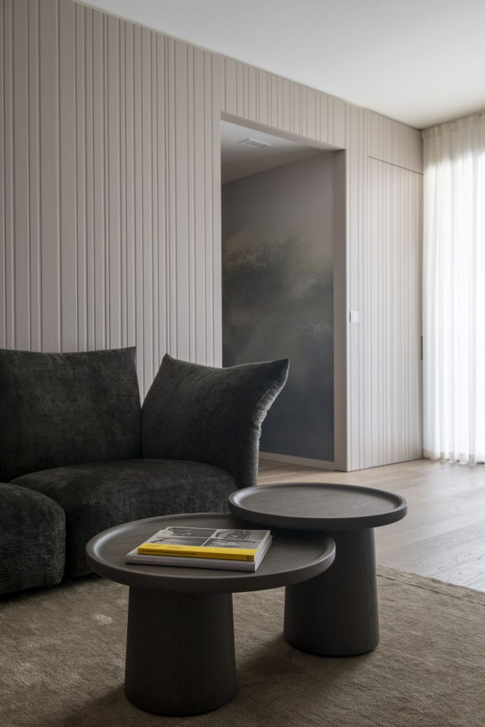 Il disegno ha preso avvio con la progettazione architettonica degli spazi interni a cura dell’arch. Carmen Ferrara, che ha guidato la ridefinizione distributiva dell’appartamento, in collaborazione con l’arch. Niklas Knap per lo studio illuminotecnico.