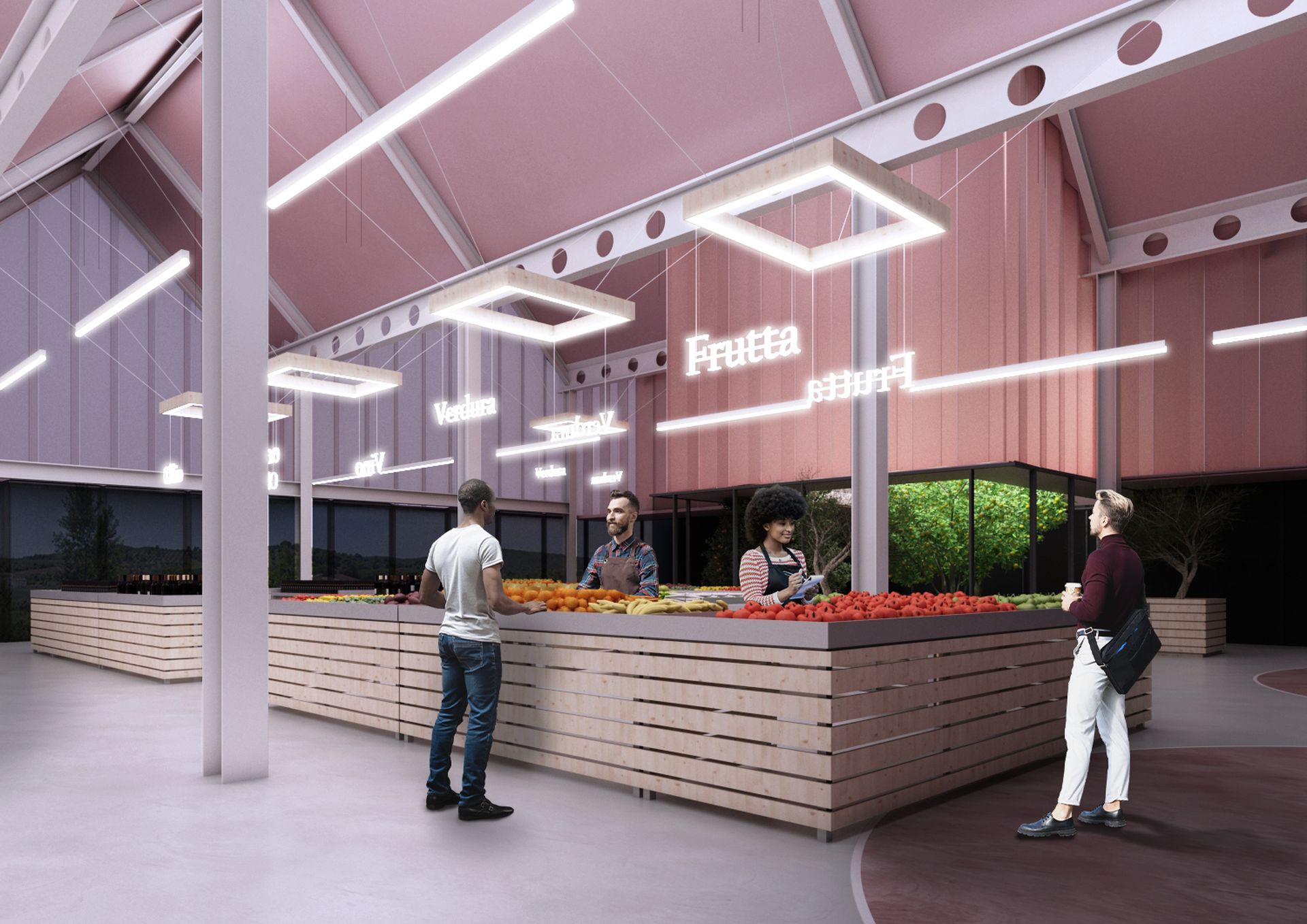 L’intervento prevede l’insediamento di un nuovo mercato agricolo – Mag – avente nello specifico i seguenti spazi funzionali: