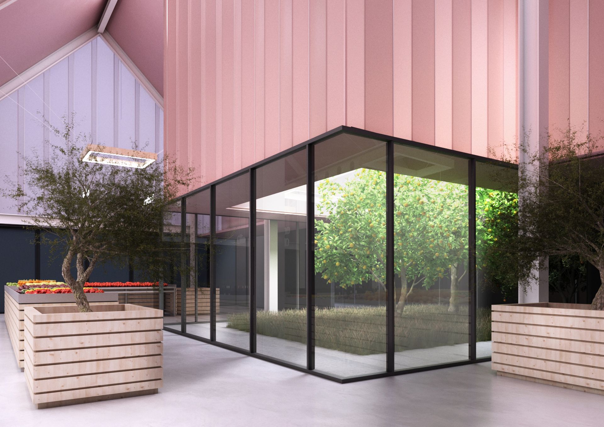 L’edificio immediatamente adiacente, indipendente dal volume più importante, offrirà un servizio di ristorazione e consumazione dei prodotti agricoli venduti all’interno del mercato, permettendo agli utenti di vivere a 360 gradi l’esperienza offerta dal Mag.