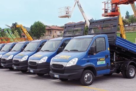 Centodieci piattaforme verticali e semoventi elettriche con altezze da 6 a 17 metri, marca Haulotte, jlg e Manitou, venti piattaforme “ragno” con altezze da 14 a 25 metri, marca Oil & steel e Pagliero, tre minigru semoventi modello Jekko spd 360, venti autocarri Iveco modello Daily (allestimenti con cassone fisso e ribaltabile), cinquanta miniescavatori marca Waker, Neuson e Yanmar con pesi da 8 a 150 quintali, accessoriati di benne, martelli idraulici demolitori e trivelle.