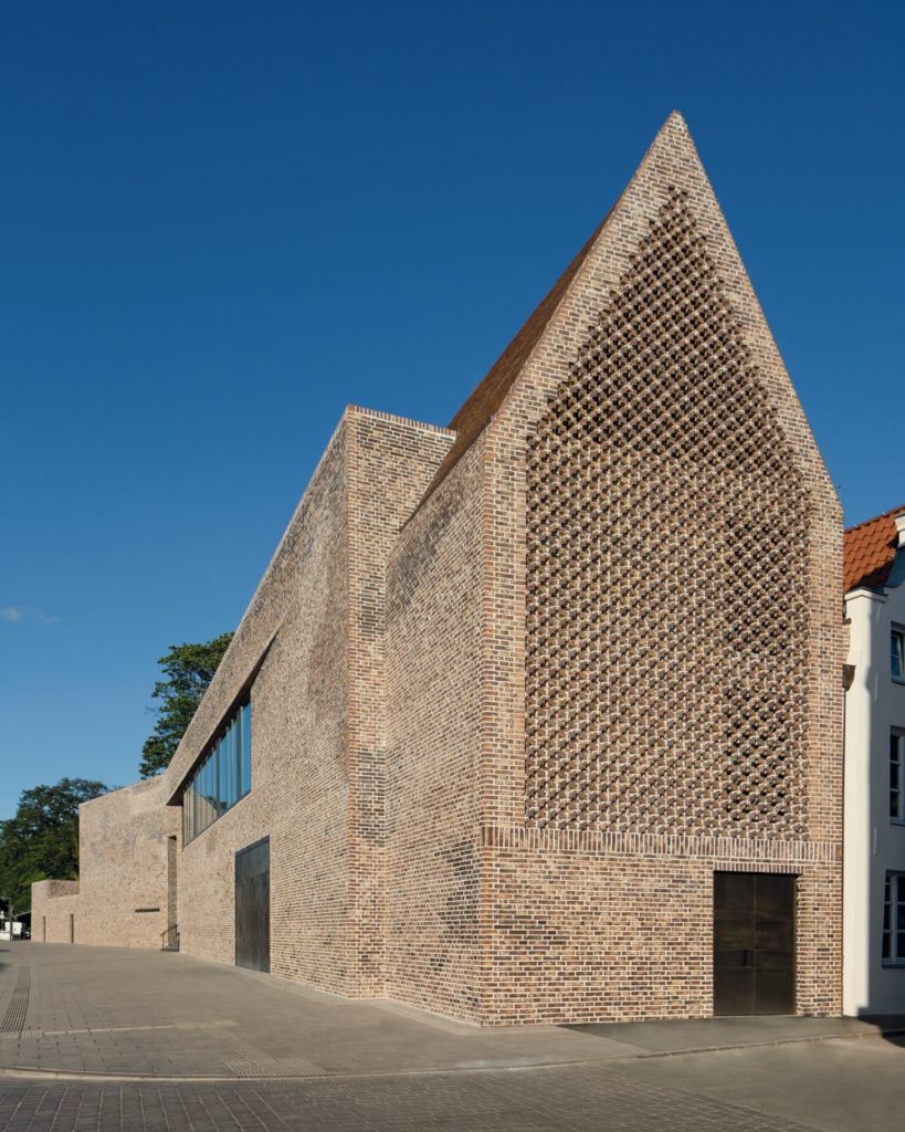 L’aspetto che più colpisce è la scelta del laterizio come strumento per la salvaguardia della sua cultura costruttiva. Il Museo, che ha ricevuto numerosi premi e riconoscimenti quali il Riba Award per l’eccellenza internazionale 2016 e il DAM Preis per l’architettura tedesca 2017, è infatti caratterizzato dal mattone faccia a vista, di dimensioni 30,5×10,5×6,5 cmsimili a quelli del vicino Convento, posato con un ampio giunto di colore bianco così da ottenere una facciata più rossa e calda.