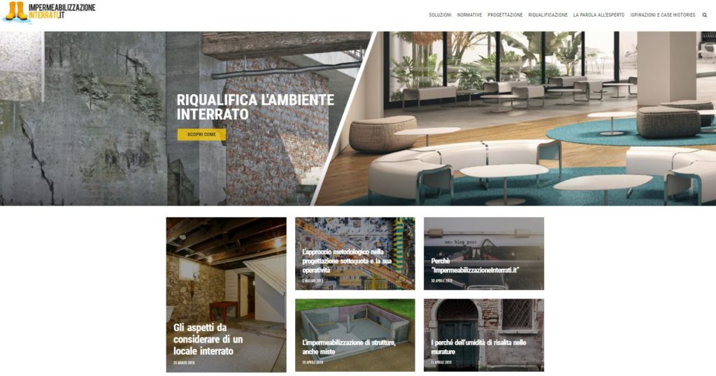Impermeabilizzazioneinterrati.it è una sorta di prontuario online dove si possono trovare tutte le informazioni e gli approfondimenti che servono: normative, tecniche, di prodotto, esempi di realizzazioni, consigli degli esperti, ispirazioni, nuove tendenze del settore.