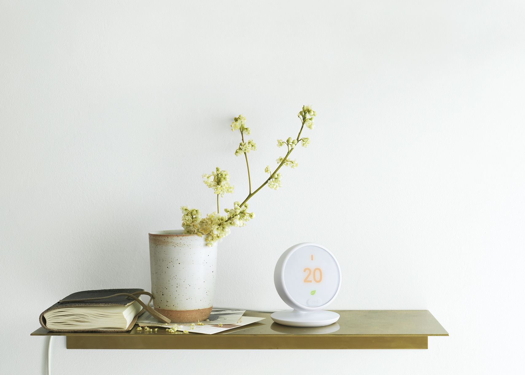 • Nuovo design. Nest Thermostat E si discosta dal design audace di Nest Learning Thermostat con uno più discreto, grazie all’anello esterno bianco e al display satinato montato su un supporto elegante che si adatta a qualsiasi casa. In più, grazie al rivestimento in tessuto di Heat Link E, diventa un vero e proprio complemento d’arredo.