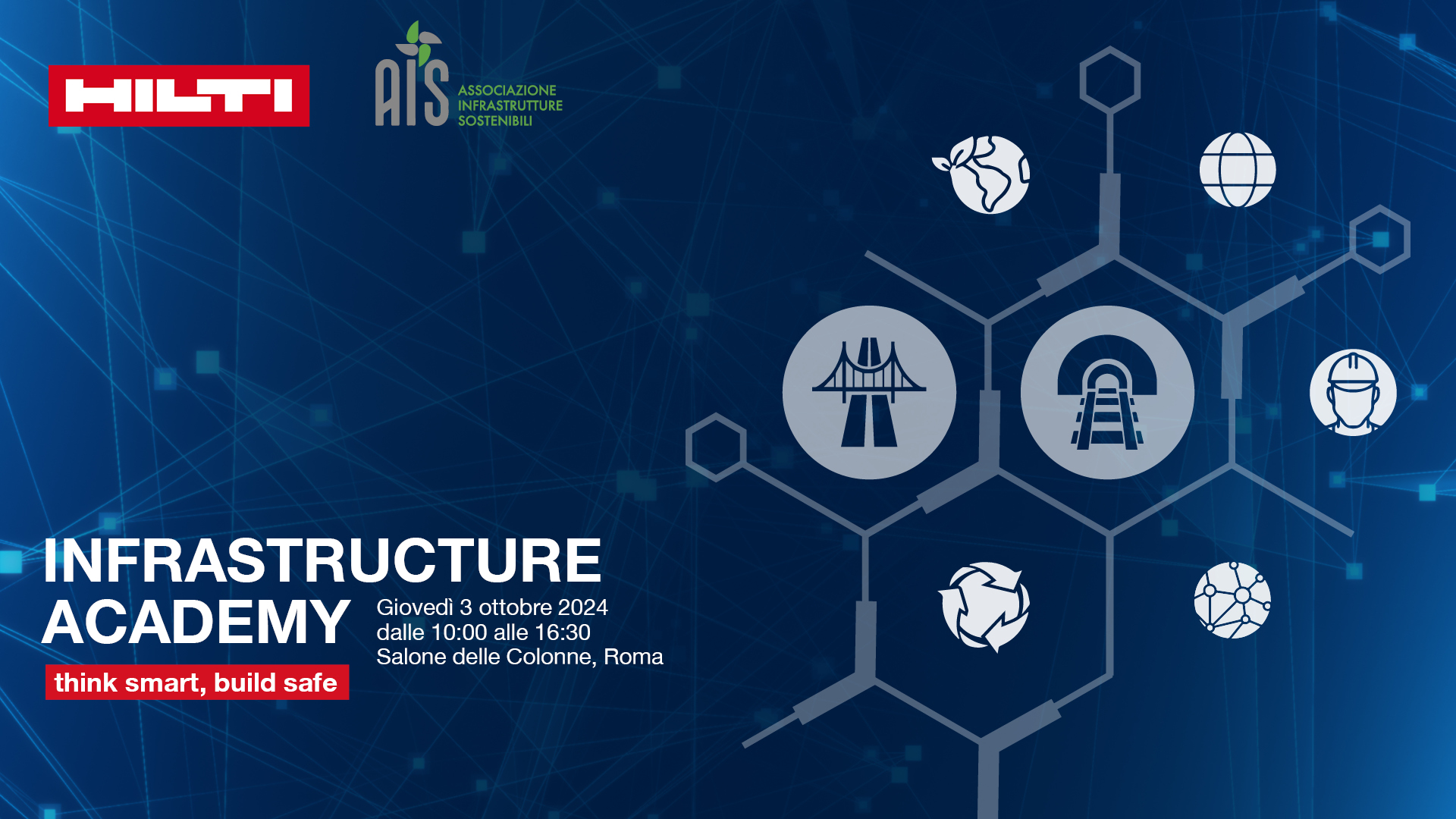 Ritorna l’Infrastructure Academy di Hilti Italia, l’evento di punta dedicato all’innovazione infrastrutturale nel mercato delle costruzioni, organizzato in collaborazione con AIS (Associazione Infrastrutture Sostenibili). La prossima edizione si terrà giovedì 3 ottobre a Roma presso il Salone delle Colonne, con la partecipazione di numerosi esperti e aziende di rilievo nel settore delle infrastrutture. |