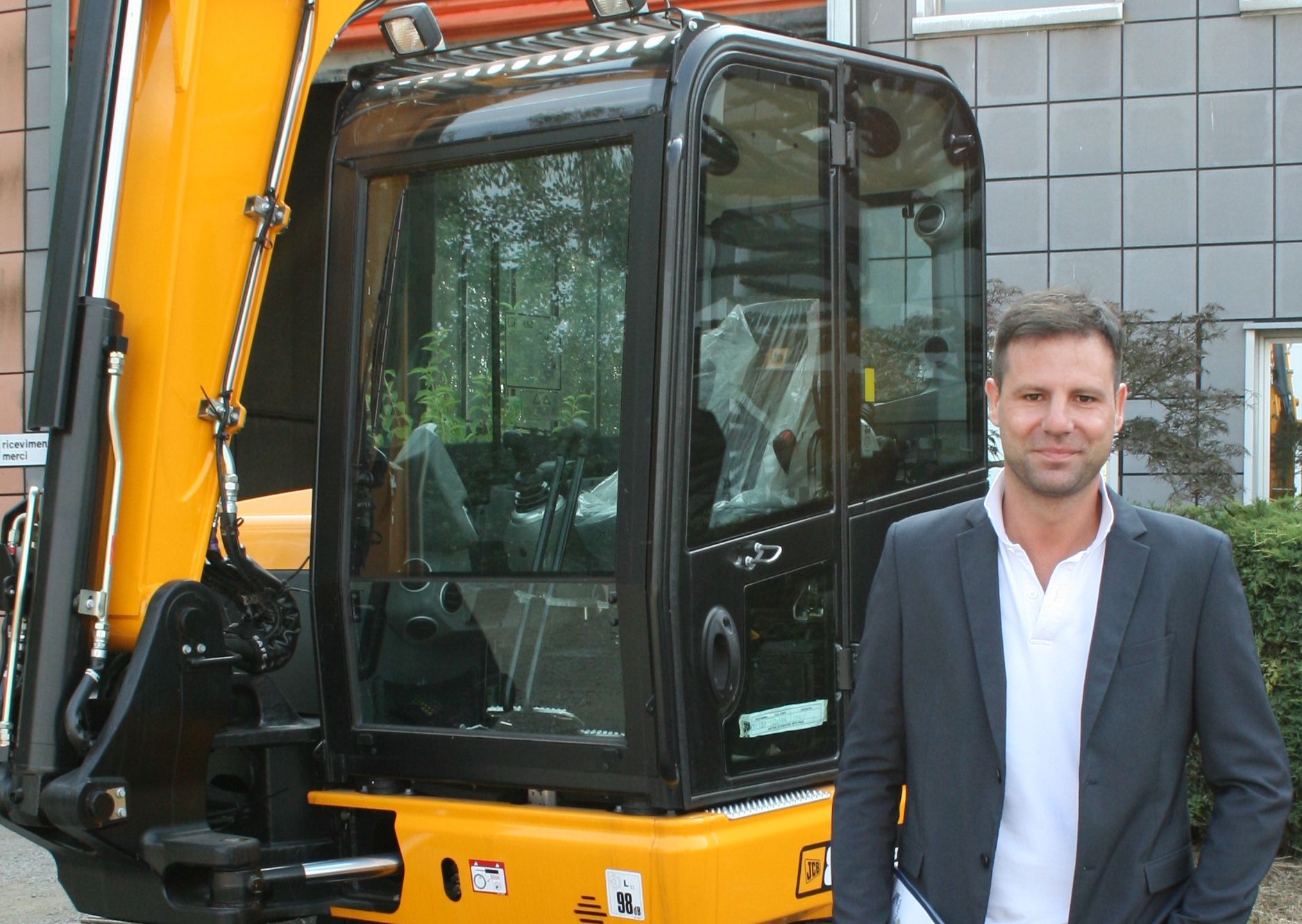 - un escavatore cingolato triplice JCB JS220 accessoriato con frantumatore e benna;
