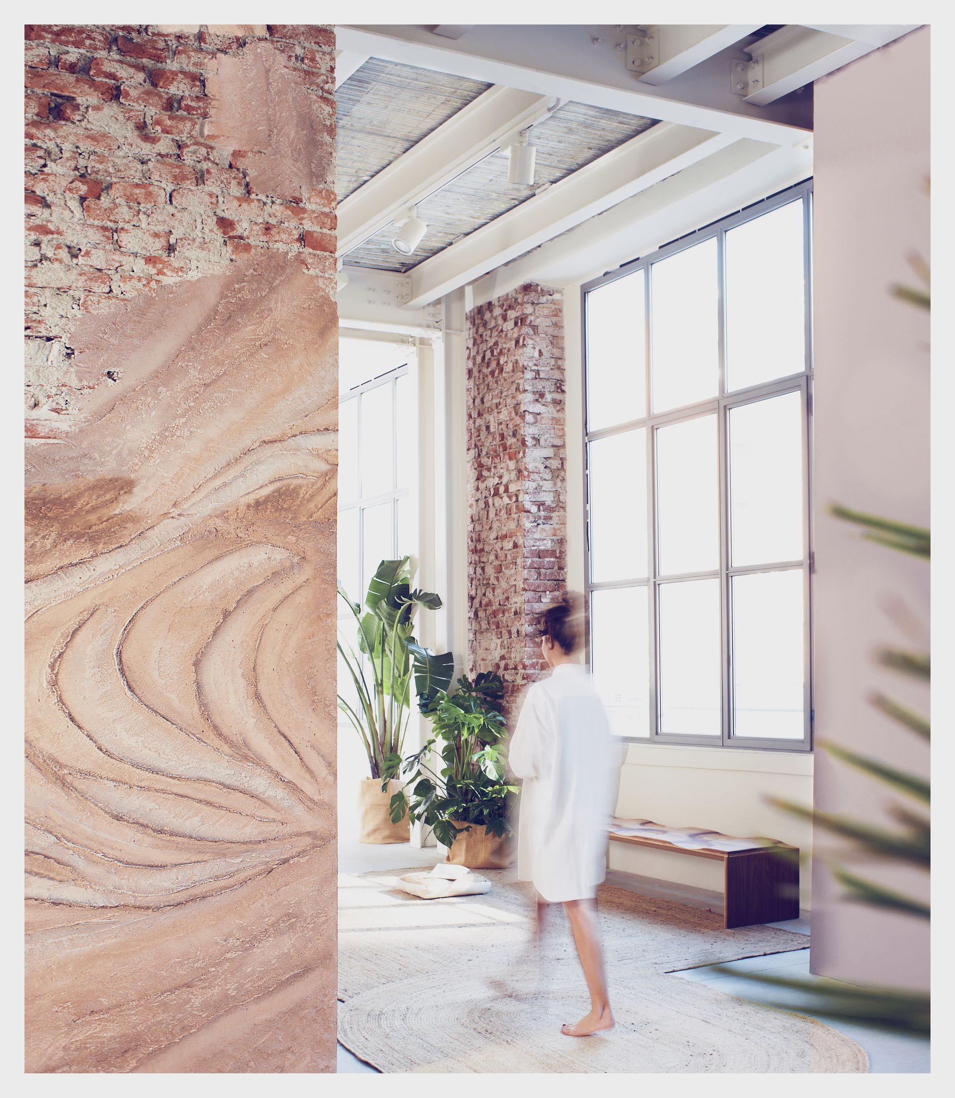 Per i cinque scatti fotografici della campagna We Belong to Nature, sono stati scelti alcuni dei prodotti di Novacolor che rappresentano il suo impegno verso il tema della sostenibilità. Troviamo dunque CalceCruda Intonachino (effetto pietra), rivestimento decorativo di natura minerale dalla forte connotazione naturale; Africa, rivestimento decorativo per interni a base di cariche metallizzate che permette di creare giochi di luci e trame tattili con un forte impatto estetico e Marmorino KS composto da idrato di calce, sabbie di marmo e modificanti reologici.