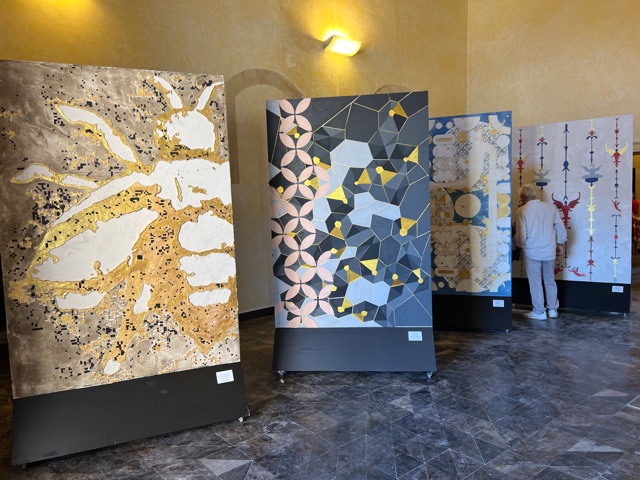 Da una parte l’ape, il simbolo, il significante figurativo che rimanda alla famiglia Barberini e ad uno dei suoi più grandi esponenti, Urbano VIII, committente di alcune delle più grandi opere Barocche. Dall’altra il pixel, componente primario e irriducibile degli schermi digitali, e anche unità fondamentale degli attuali codici Qr, anche essi quindi veicoli di messaggio.