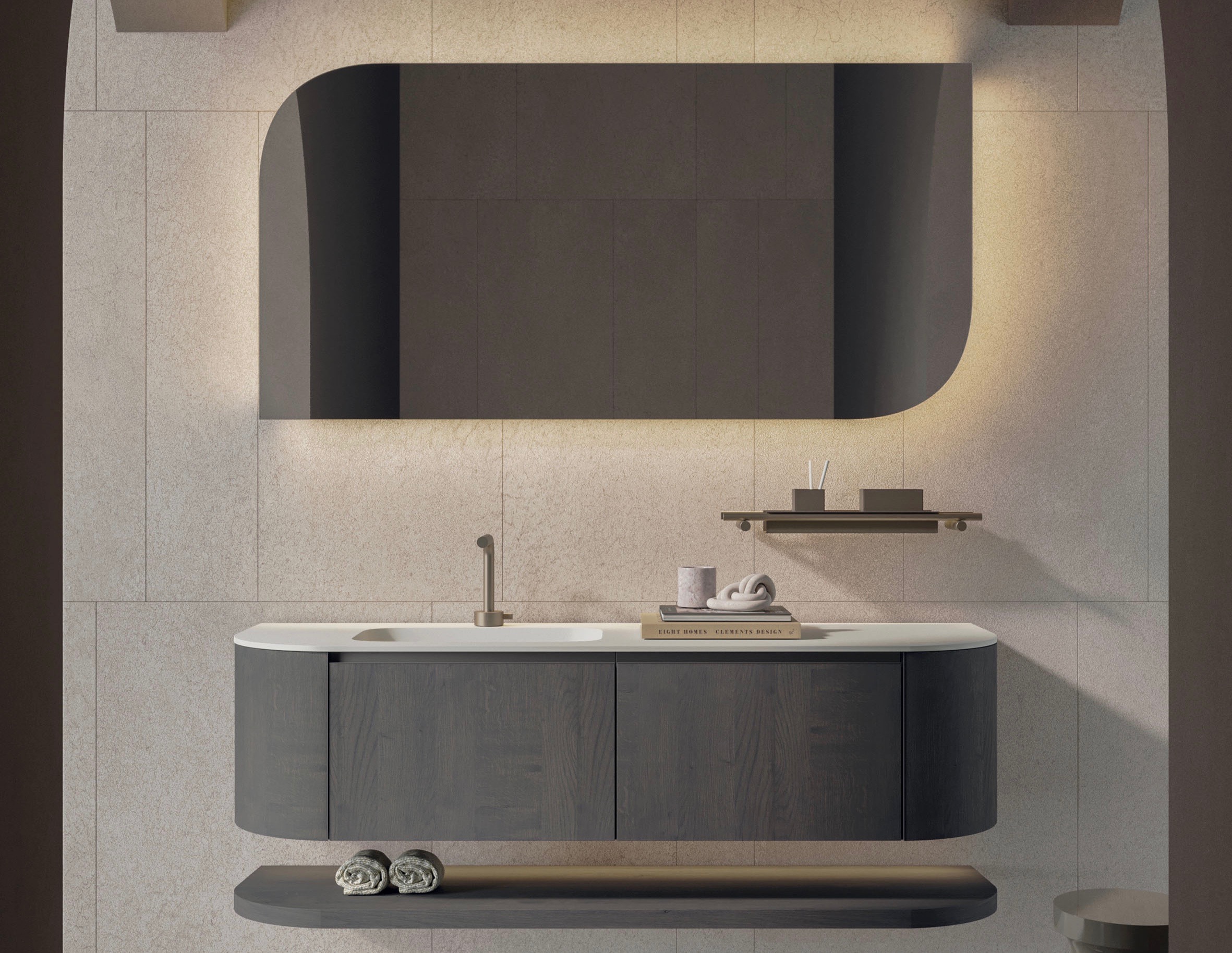 Elle è la collezione completa di Novello e coordinata per l’arredo bagno caratterizzata da linee morbide e sinuose e finali delicatamente arrotondati, geometrie che vanno dal semicerchio all’angolo retto per ambienti avvolgenti e rilassanti.