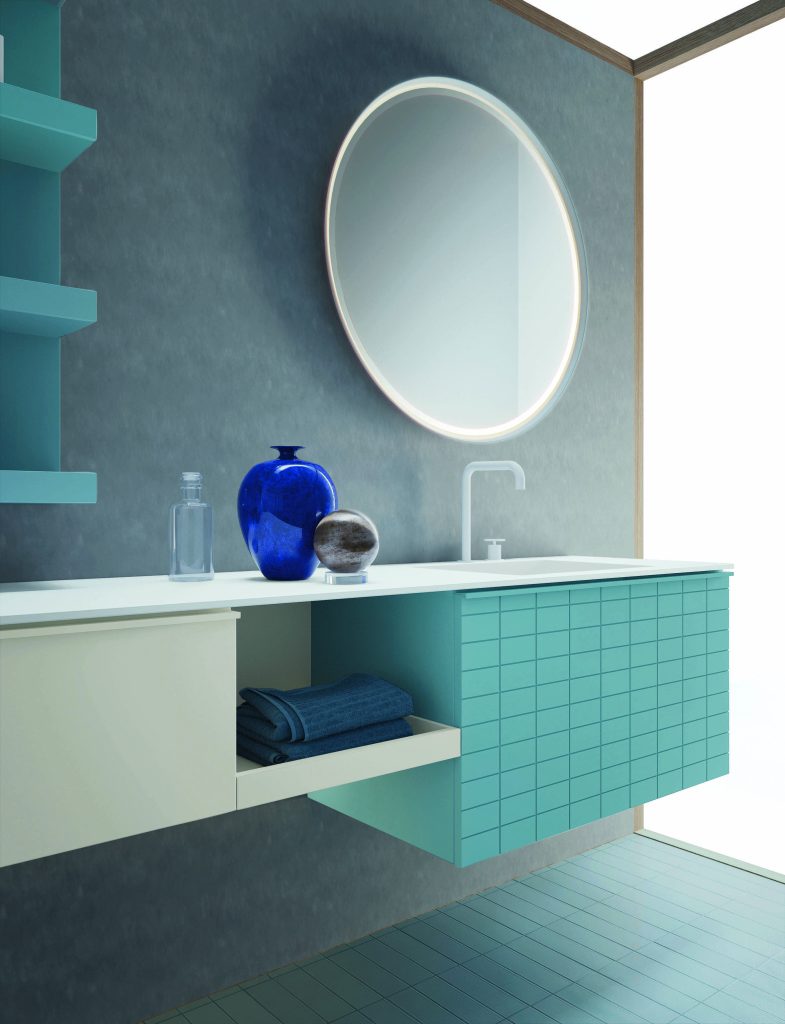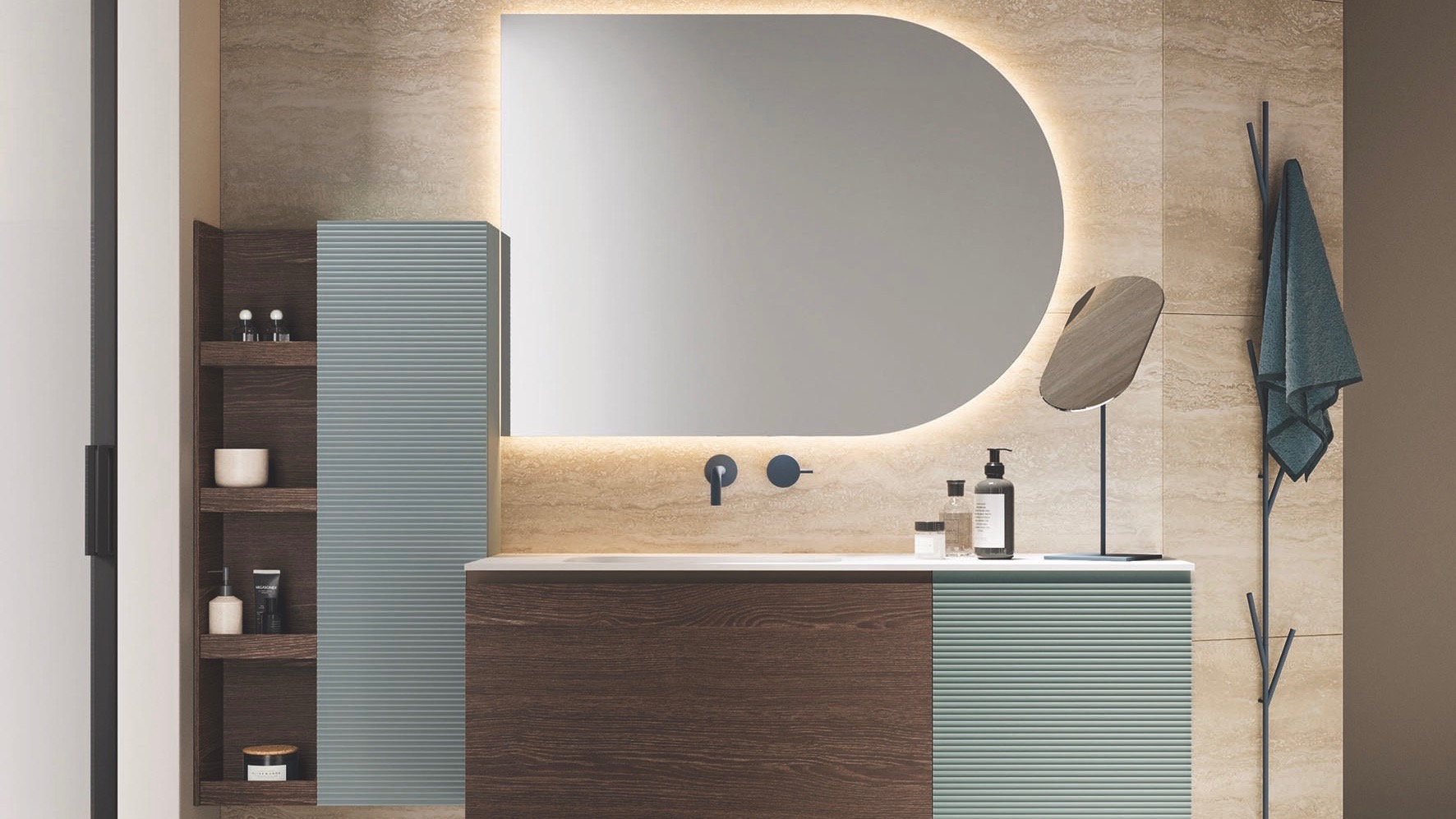 Una particolare attenzione è riservata agli specchi, disponibili in versioni tonde, quadrate e rettangolari. In particolare, Bloom presenta una struttura perimetrale in metallo dal profilo svasato che conferisce un aspetto sofisticato e contemporaneo, permettendo alla luce di diffondersi in maniera naturale. Tra le nuove proposte spicca Cut, uno specchio tondo con una sezione tagliata lungo la circonferenza, che dona un tocco di elegante design anche agli spazi bagno più piccoli. Questo specchio è inoltre accessoriato con una lampada spostabile lungo il bordo esterno.