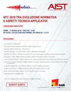 Proprio attorno a queste ultime novità contenute nelle nuove norme, Aist (Associazione Italiana Software Tecnico) ha organizzato, con il patrocinio di Saie, il convegno “NTC 2018 tra evoluzione normativa e aspetti tecnico-applicativi” che avrà luogo a Roma il 13 aprile presso l’NH Hotel Collection Giustiniano, via Virgilio 1, e-f-g.
