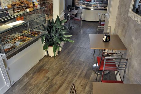 Per la pavimentazione del locale è stata scelta Soul, la collezione in grés porcellanato rettificato effetto legno di Ceramiche Keope, nel formato cm 25×150 color Walnut, selezionata per il suo raffinato effetto vintage in grado di esaltare lo stile unico del locale. Questa collezione dallo charme naturale e discreto, infatti, è la proposta ideale per dar vita a spazi caldi, in cui l’impronta contemporanea acquista la profondità e il fascino del passato. Utilizzato all’interno del Caffè Pasticceria Bahira, Soul dona un’atmosfera accogliente ed elegante. Da un punto di vista estetico, la collezione contribuisce a creare connessione e continuità tra gli ambienti, ponte ideale tra i diversi stili che caratterizzano il locale.