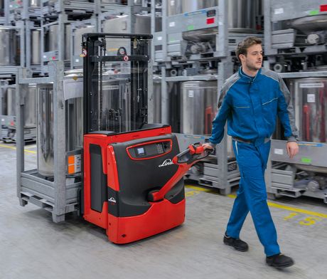 4126_1989_B_PresseLinde Material Handling, con sede italiana a Buguggiate (Va) lancia una nuova generazione di stoccatori flessibili e affidabili: L14 – L20 con portate da 1,4 a 2,0 tonnellate sono dotati di guida a timone con operatore a terra o con pedana pieghevole, per altezze di sollevamento fino 5.300 metri. I nuovi stoccatori sono equipaggiati di serie con dispositivo di pesatura del carico, coperchio del vano batteria che assicura una visione ottimale e innumerevoli varianti di montante, e sono disponibili in opzione con velocità di sollevamento incrementata del 33 per cento.