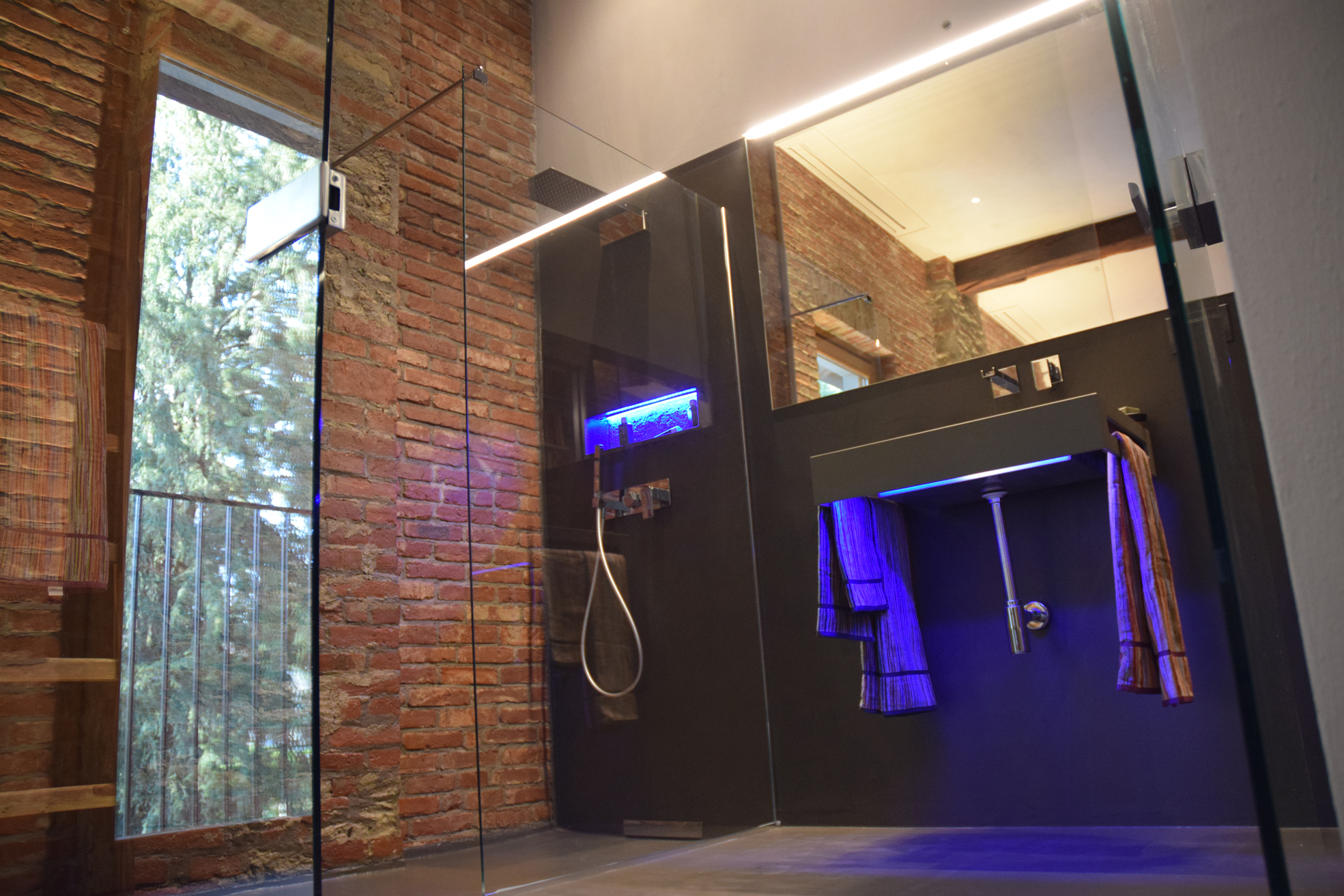 In particolare all’interno della gamma si scelgono SpazioCemento e SpazioResina per dare un nuovo look ad ambienti che mescolano con stile materiali diversi sia antichi che contemporanei. Di grande effetto la scelta di resinare in una delle camere da letto la parete retrostante al letto così da creare un’elegante finta testiera.