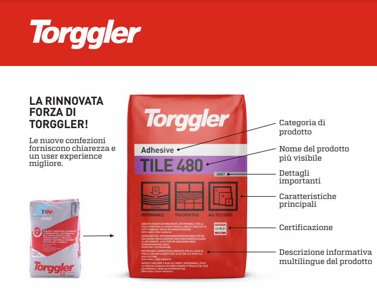 Torggler, azienda trentina dal 1865 presente sul mercato dei prodotti chimici per l’edilizia, guarda da sempre al futuro e per questo ha avviato un processo di restyling e rinnovamento del marchio e dell’aspetto visivo di tutte le confezioni. Il rinnovamento rispecchia gli standard qualitativi dei prodotti Torggler: sulle confezioni diventano così più chiari i campi di applicazione e le modalità d’uso di ciascun prodotto.