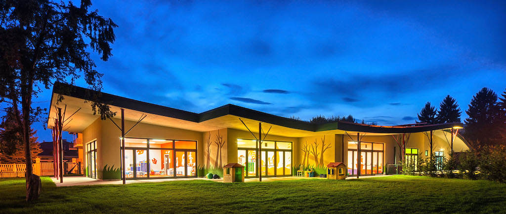 Il termine “giardino d’Infanzia”, riferito al luogo dove vengono accuditi i bambini prima dei sei anni di età, è stato spunto per riflettere da un lato sull’importanza degli spazi all’aperto e dall’altro sull’interesse del creare un ambiente interno che rispettasse un comfort ambientale il più performante possibile, adattando la progettazione alle specifiche necessità dei piccoli utenti e alle regole della sostenibilità: fra gioco e realtà si è configurato un nuovo “Bosco dell’infanzia”.