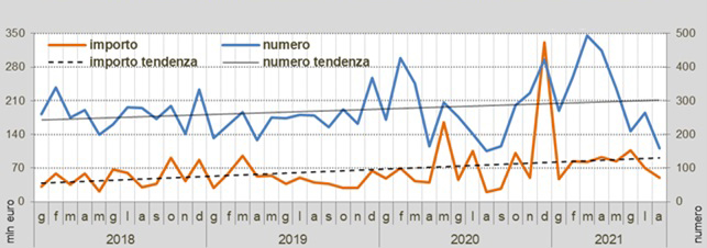 I bandi per appalti integrati rilevati nel mese di agosto sono stati 48, con valore complessivo dei lavori di 1.472,3 milioni di euro e con un importo dei servizi stimato in 25,2 milioni di euro. Rispetto al mese di agosto 2020, il numero è cresciuto del 2,1% e il valore è sceso del 12,4%. Dei 48 bandi 38 hanno riguardato i settori ordinari, per 9,4 milioni di euro di servizi, e 10 i settori speciali, per 15,8 milioni di euro di servizi. Negli otto mesi dell’anno ne sono stati pubblicati 373, con un valore complessivo di 4.396,7 milioni di euro, +39,7% in numero e +31,8% in valore, il valore complessivo dei servizi di architettura e ingegneria compreso è di 105 milioni di euro, e crescono del 55,2% rispetto ai primi otto mesi del 2020. (vb)