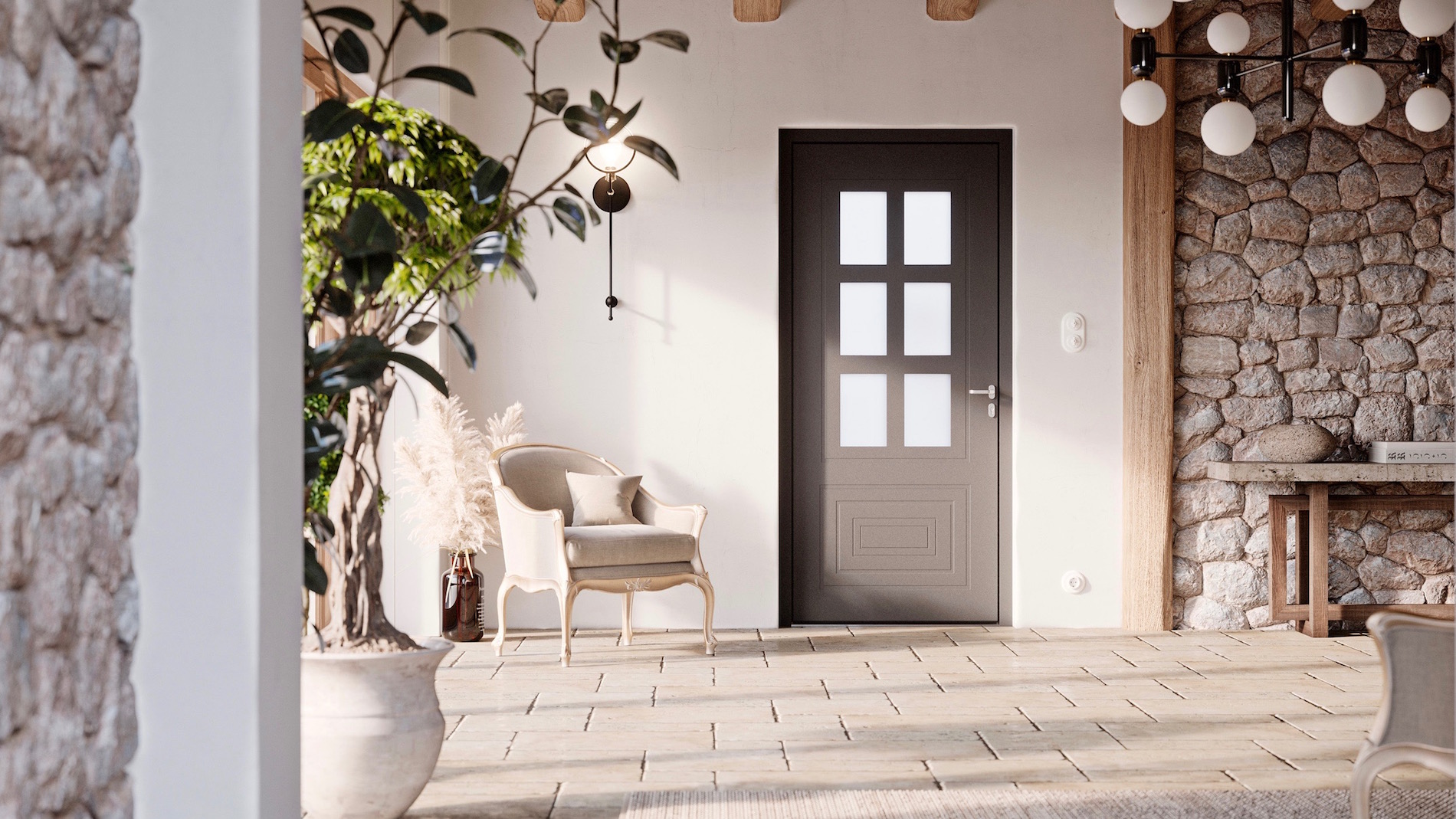 Forme classiche ed eleganti per la nuova linea di portoncini smart Tenvis di Oknoplast.