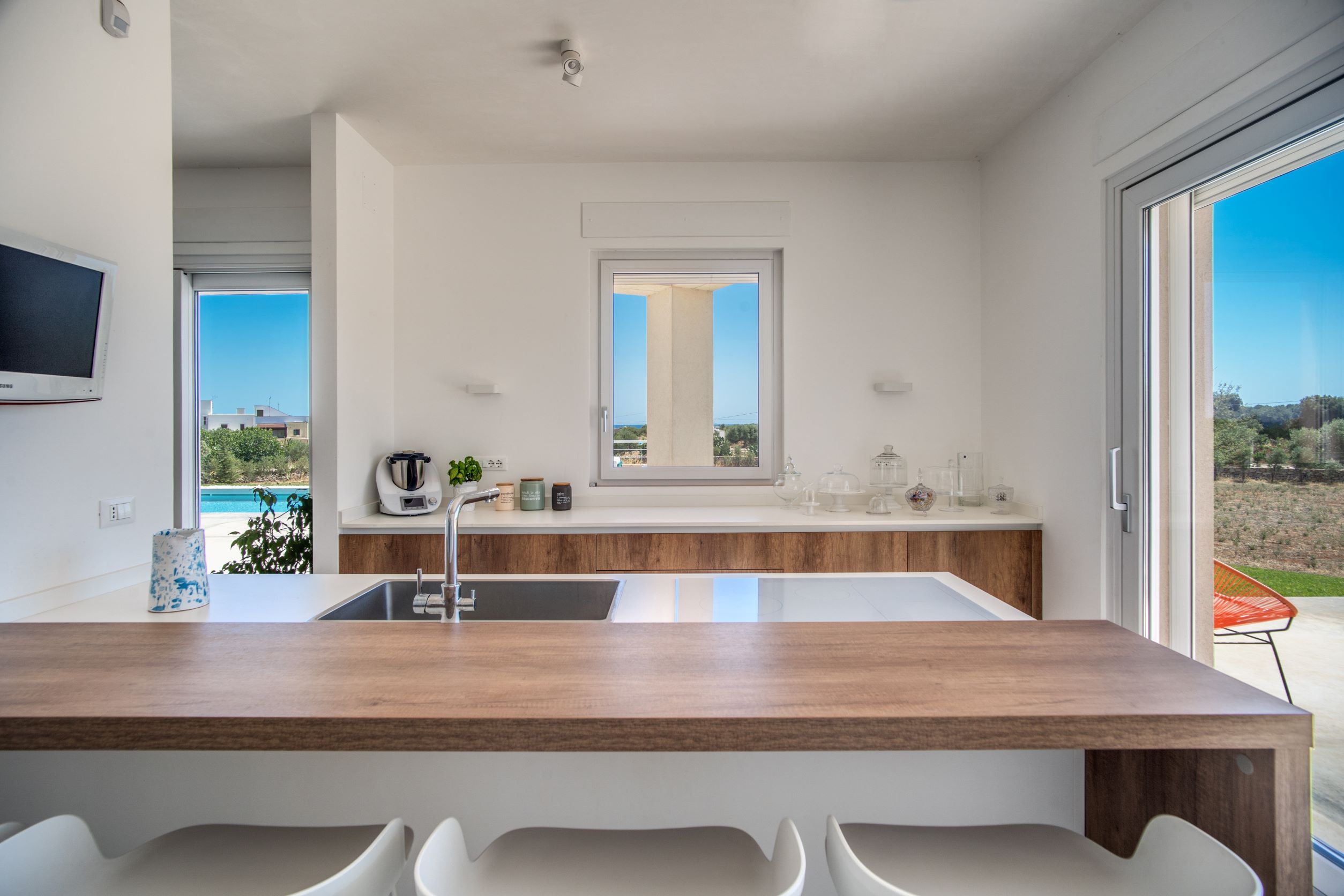 Per quanto riguarda gli infissi gli architetti hanno scelto gli alzanti scorrevoli Hst e Prolux Evolution di Oknoplast in pvc, con triplo vetro e nella finitura bianca, per via delle loro caratteristiche tecniche che hanno permesso di raggiungere la classe energetica A4, superando la soglia minima per conseguire il titolo di Nearly Zero Energy Building.