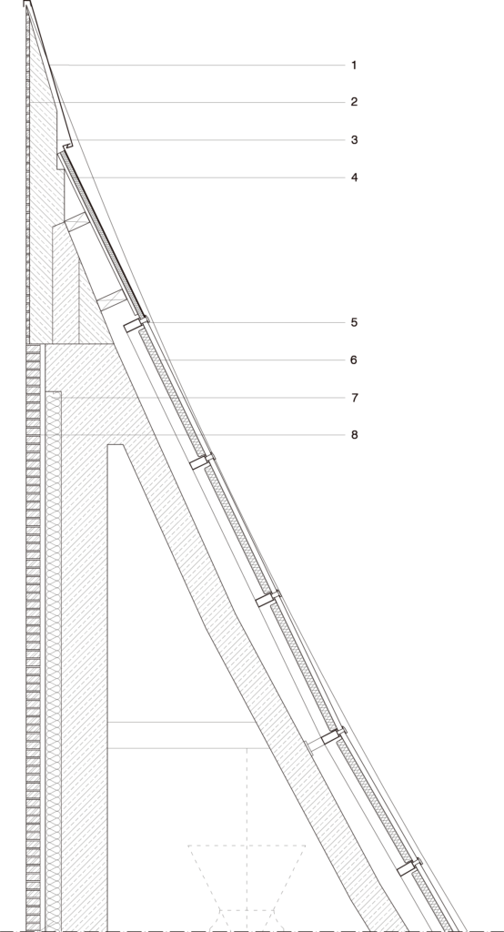 Sezione verticale in corrispondenza della vetrata della copertura, nella parte superiore dell’onda.