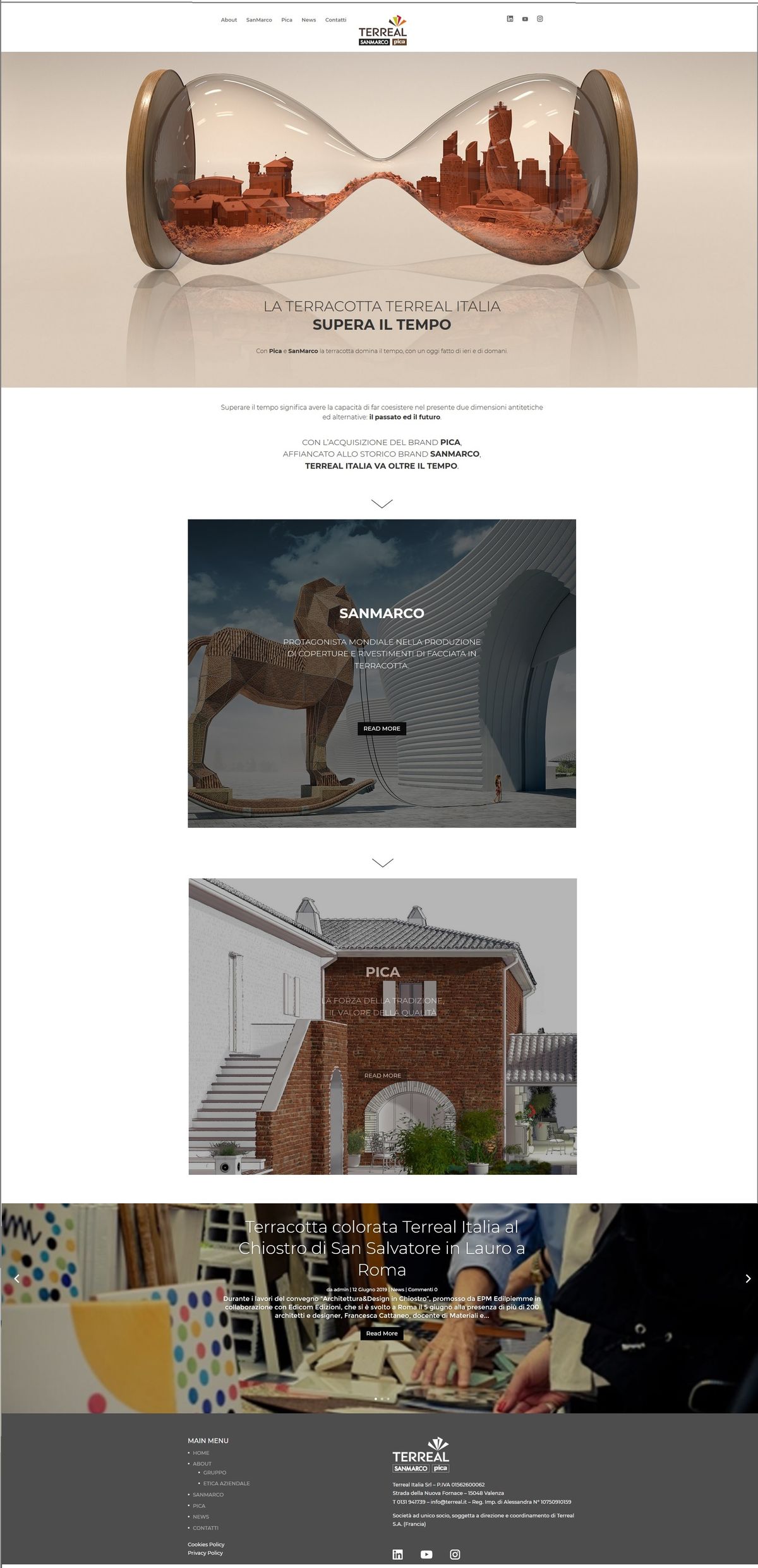 Online il nuovo sito istituzionale di Terreal Italia con l’accesso ai due siti dei brand SanMarco e Pica. Il primo comunica la capacità della terracotta di mettersi a servizio del mondo dell’architettura e saper aggiungere valore alle moderne costruzioni. Il secondo mostra prodotti in terracotta come soluzione naturale per avere performance preservando il paesaggio e dando prestigio a realizzazioni più classiche e tradizionali.