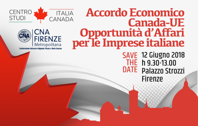 Nella cornice di Palazzo Strozzi, a Firenze, si terrà il 12 Giugno dalle ore 9 alle 13, un seminario sul tema “Accordo Economico Canada-UE: Opportunità d’Affari per le Imprese italiane” organizzato dal Centro Studi Italia-Canada e dalla CNA Firenze Metropolitana.