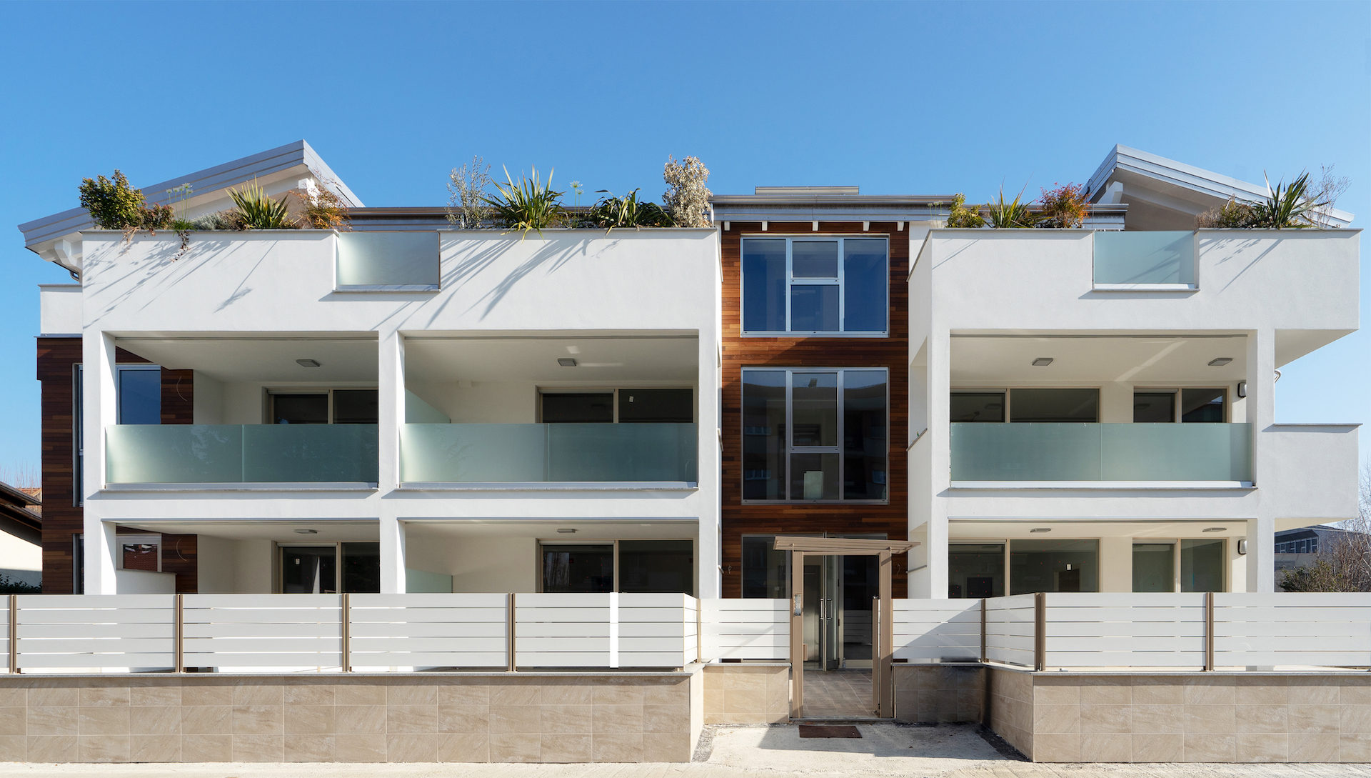 Ogni appartamento è dotato o di giardino, o di ampi balconi e terrazze coperte, da utilizzare come zone pranzo o aree relax. All’ultimo piano non mancano due attici con zone esterne importanti.