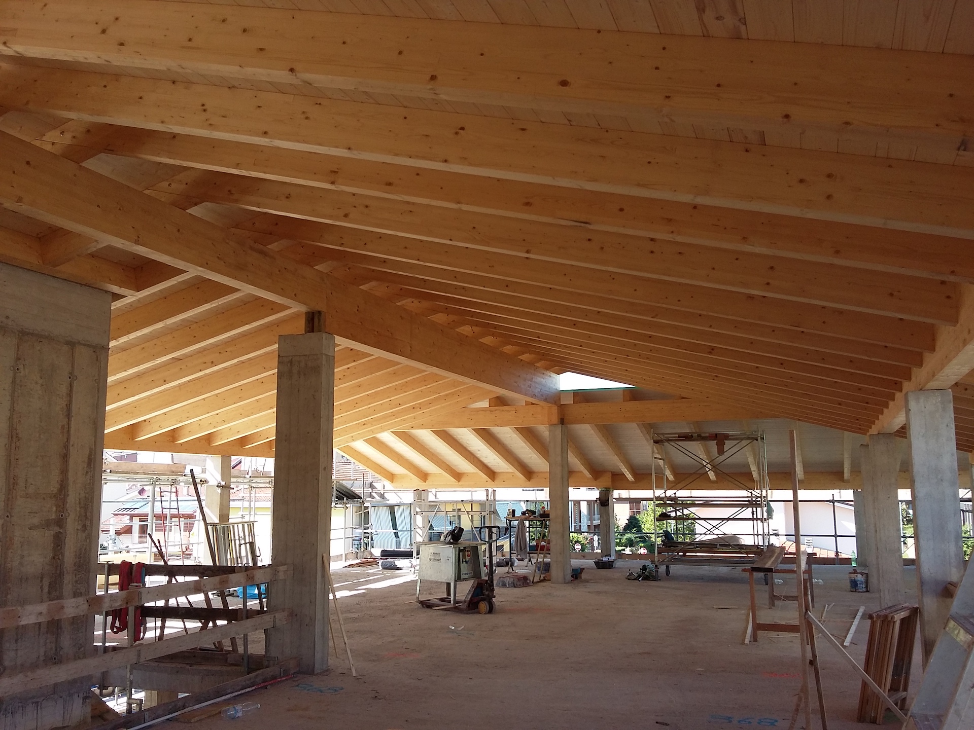 Copertura in abete rosso lamellare.