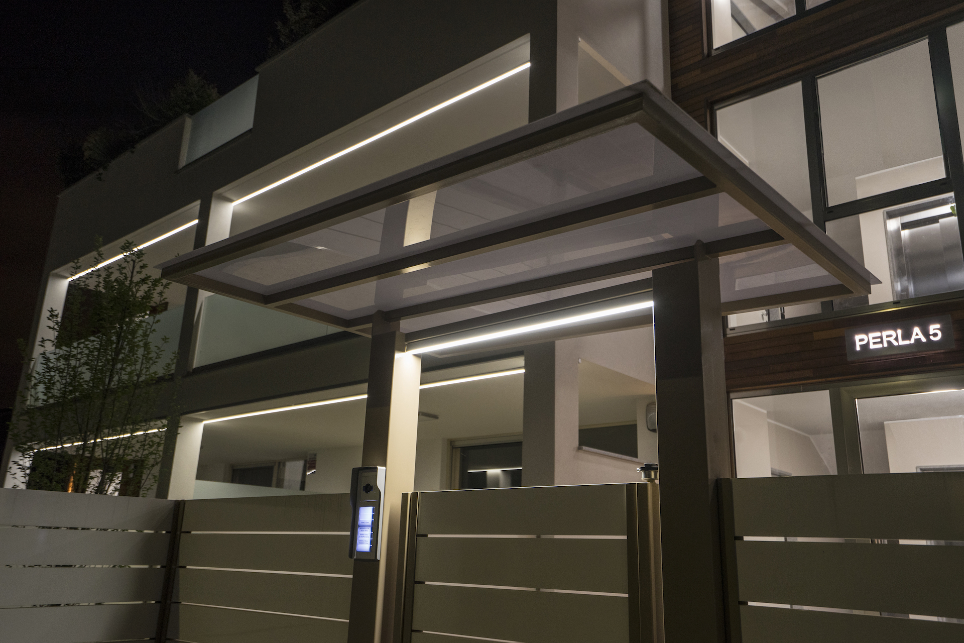 I volumi della costruzione sono modulati in una composizione che s’integra perfettamente con il contesto e fanno di Perla5 un importante trait d’union tra rigore classico e stile contemporaneo, ponendosi come naturale prosecuzione del quartiere e, allo stesso tempo, introducendo elementi innovativi. Componenti caratterizzanti sono indubbiamente le grandi finestre e porte vetrate, a tutt’altezza, capaci di accogliere in un ambiente luminoso, creando una transizione con l’esterno e garantendo allo stesso tempo intimità e sicurezza.