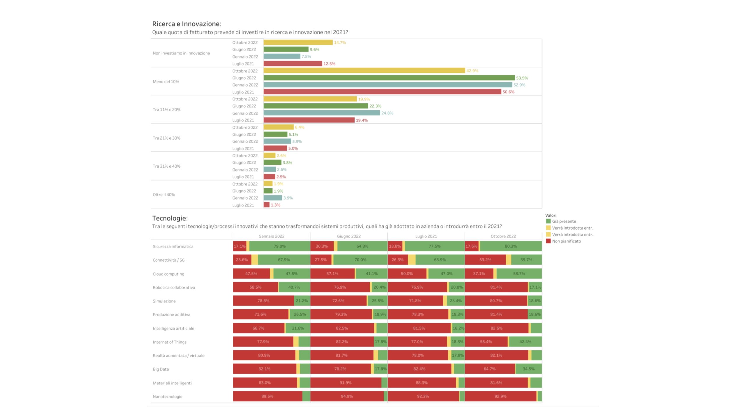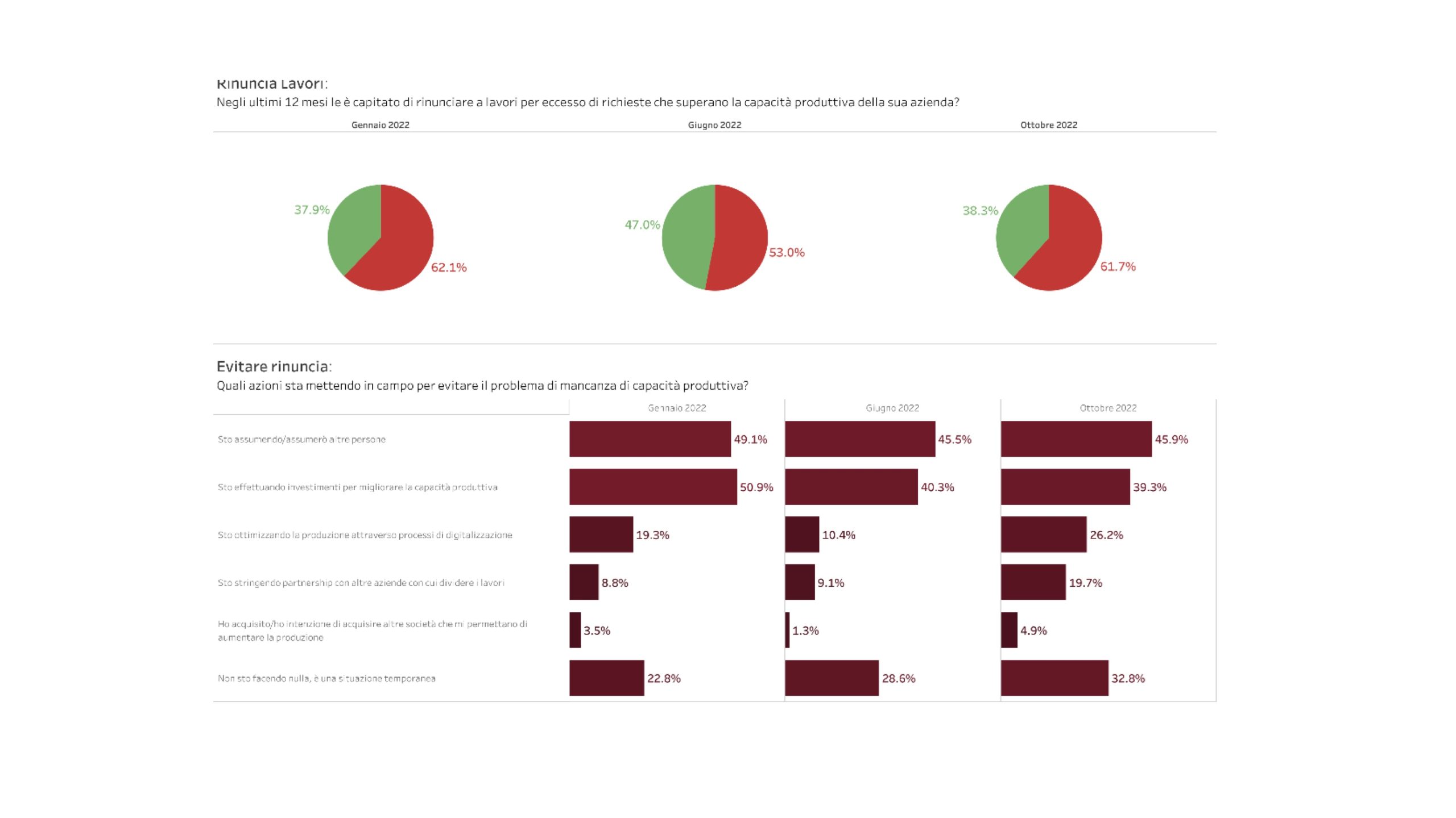 Lo dimostrano anche le attese per il fatturato a fine 2022, dato in aumento dal 64% delle imprese e l’andamento del fatturato dell’ultimo quadrimestre rispetto allo stesso periodo dell’anno precedente, cresciuto per il 61% degli intervistati.