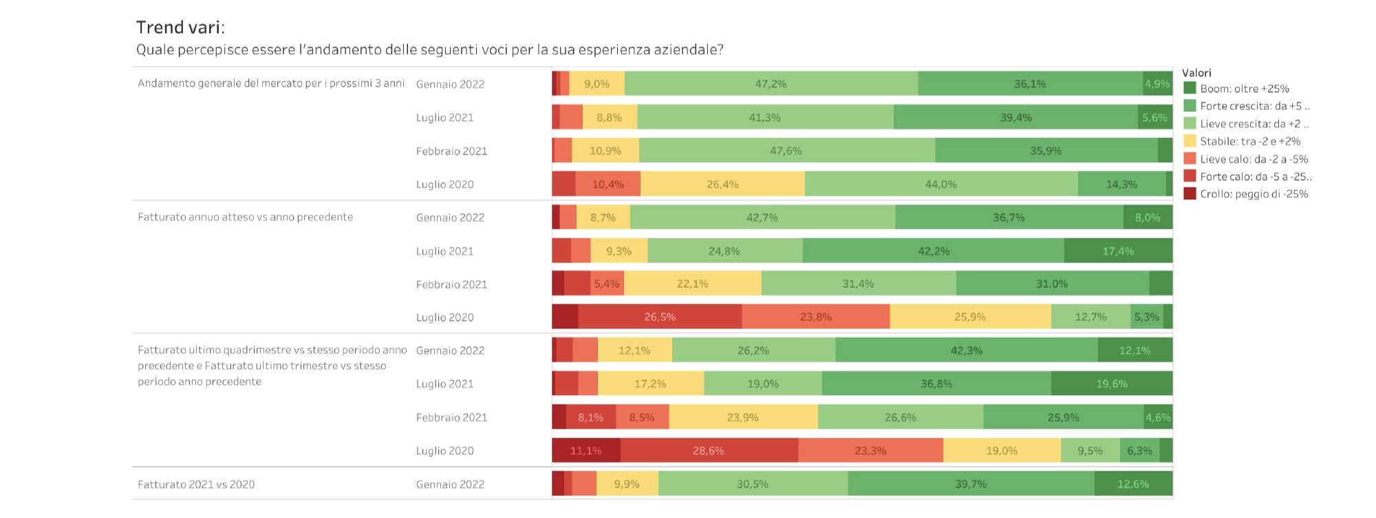 Se a questo aggiungiamo che quasi 9 aziende su 10 pensano di chiudere l’anno con un fatturato superiore rispetto al 2021 abbiamo davanti un quadro molto positivo, che prevede un consolidamento della crescita: l’88% è convinto, infatti, che il mercato continuerà a crescere (a luglio 2020 ci credeva solo il 59%). Una posizione supportata anche nei fatti: il 28% dichiara di aver aumentato gli stipendi dei dipendenti nel 2021 e il 62% di voler assumere nuove figure professionali nel prossimo quadrimestre.