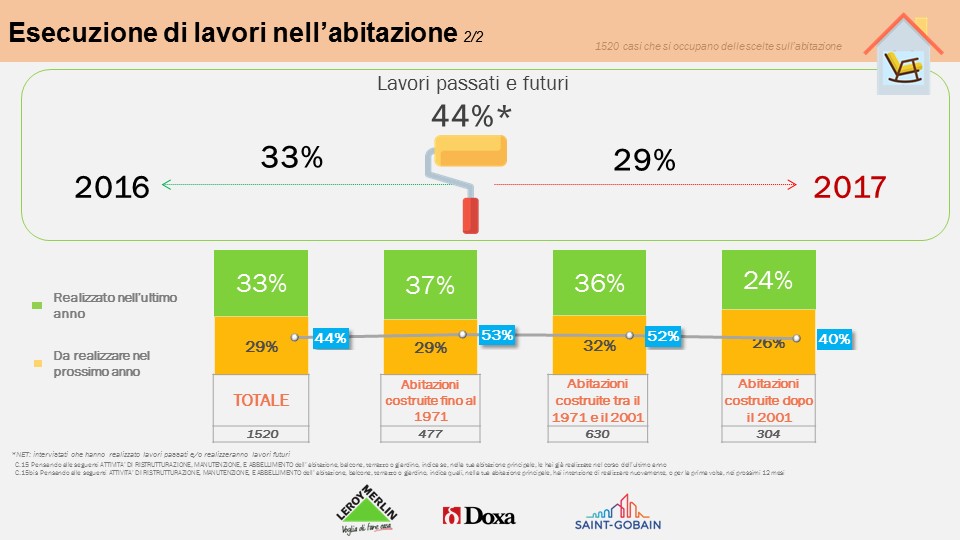 Presentati i risultati dell’Osservatorio sulla Casa 2017, l’indagine Doxa nata con l’obiettivo di monitorare gli stili abitativi degli italiani per fotografare lo stato dell’arte e offrire agli addetti ai lavori informazioni su tendenze e caratteristiche della casa del futuro, secondo le aspettative dei loro abitanti. Per la prima volta, Leroy Merlin, ideatore dell’iniziativa, è stato affiancato da Saint-Gobain, in un percorso che mira a coinvolgere nell’indagine un numero sempre crescente di player di spicco del mondo dell’abitare.