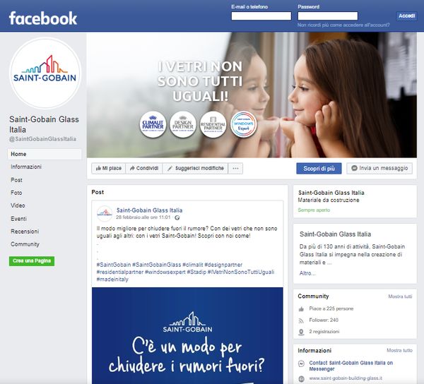 Nuova pagina Facebook per Saint-Gobain Glass Italia