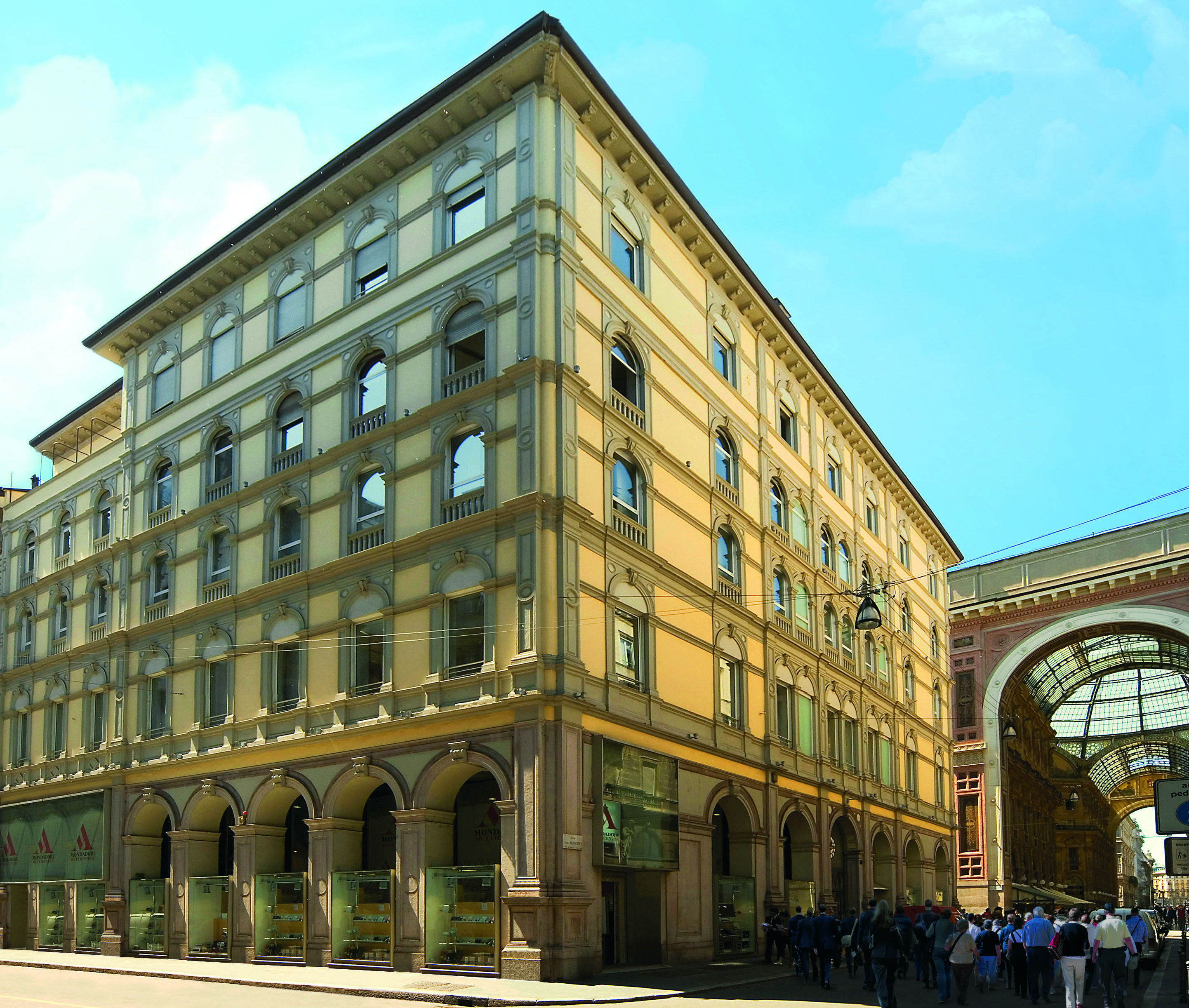 Palazzo Ricordi a Milano fu edificato sul finire del 1800 sull’area acquistata dall’Opera Pia Ospedale Borella; per il suo allineamento di facciate nell’isolato è un edificio di cortina con un asse di simmetria sul quale è impostata anche la corte interna.