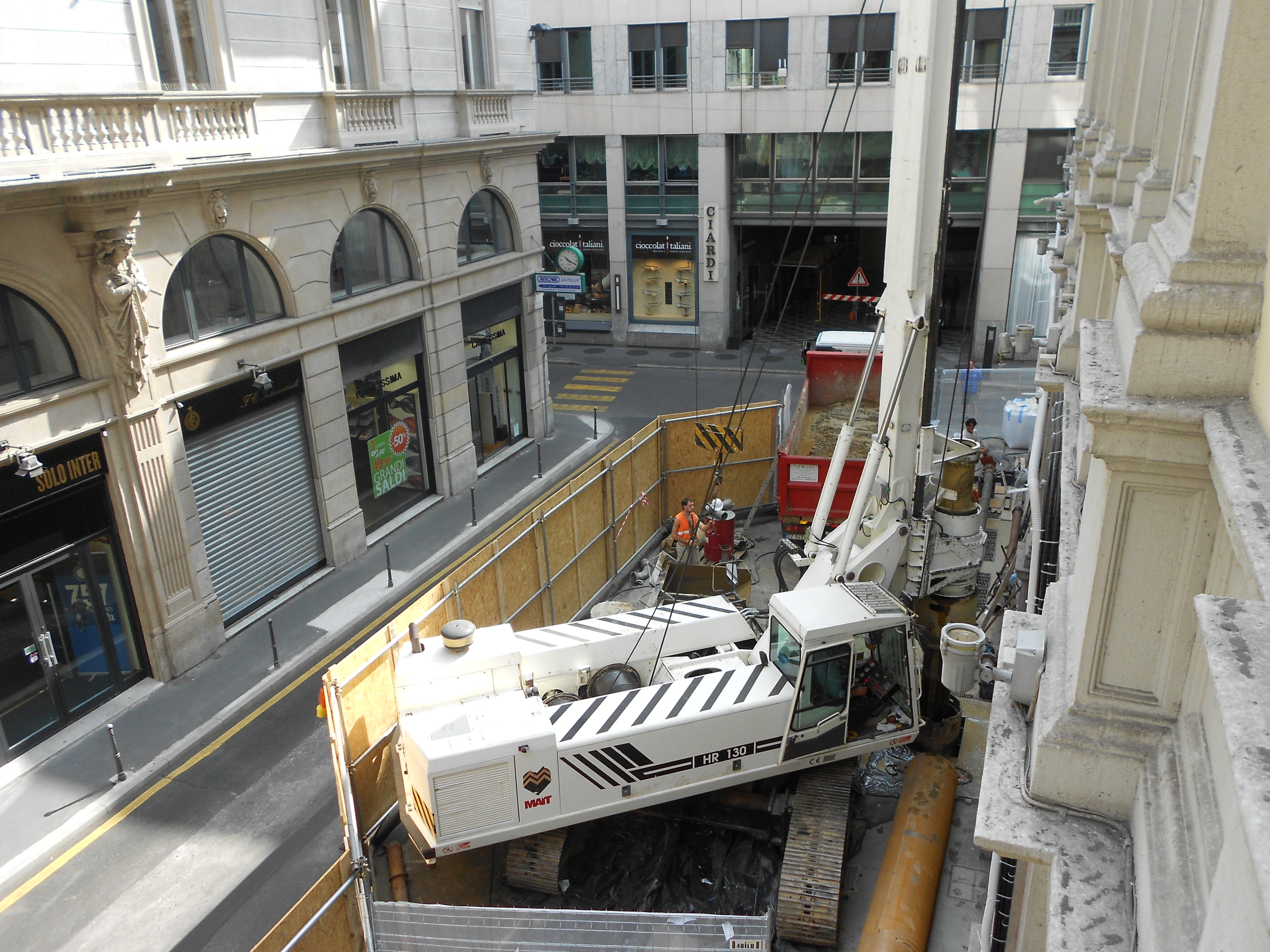 Vano scala e ascensori. L’intervento ha previsto il riutilizzo del vano scala e dei vani ascensore esistenti andando a formarne uno nuovo sul lato verso via Foscolo che, partendo dal livello interrato, serve tutti i piani. In questa zona è stata eseguita la demolizione dei solai e la realizzazione di travi di bordo ancorate alla muratura. Un’ulteriore scala e tre ascensori/montacarichi, con struttura a pareti in calcestruzzo armato, sono stati realizzati nel lato nord, tra il piano interrato e il piano terra/soppalco.