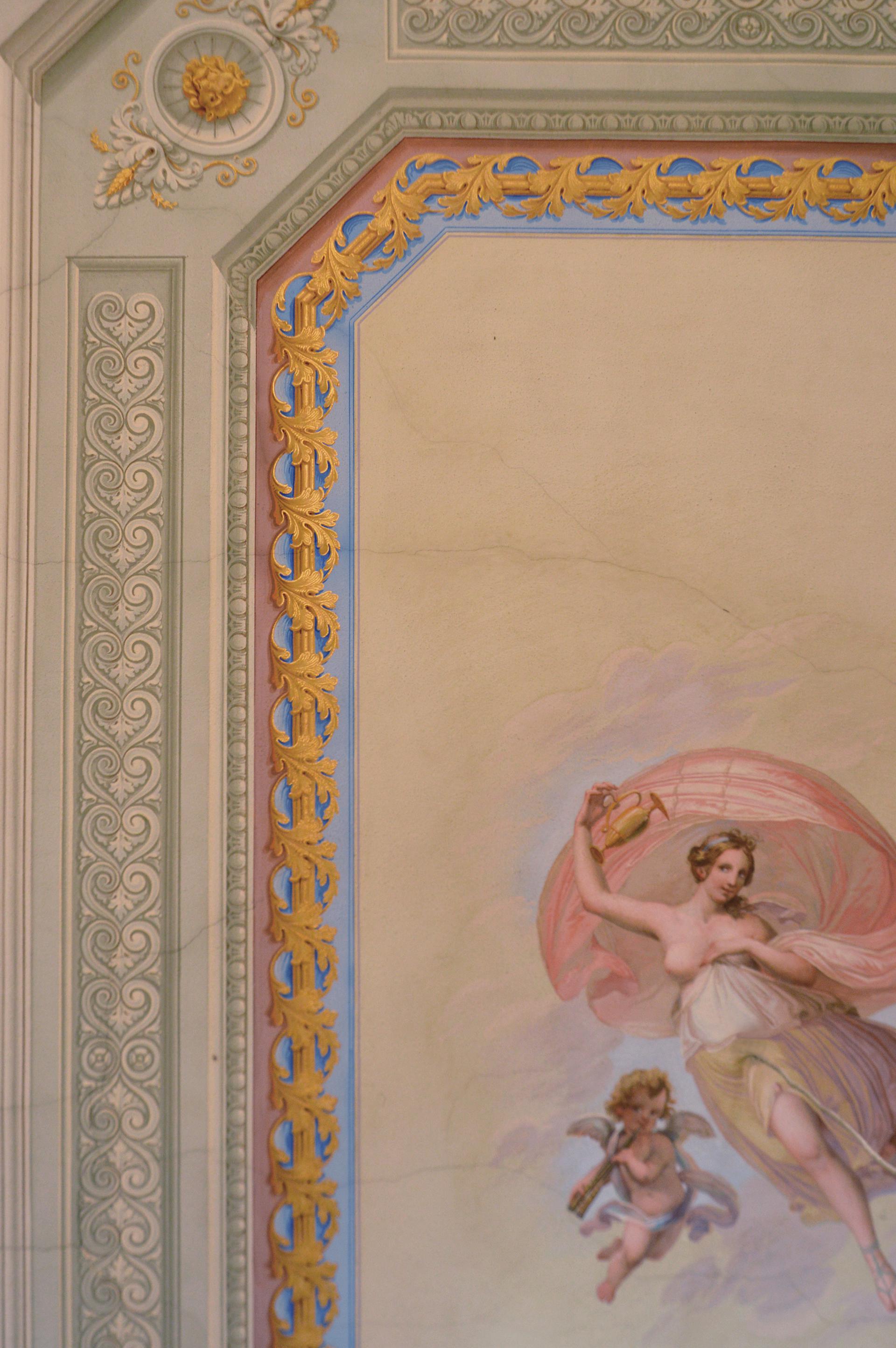Per gli interni Pierattelli Architetture ha optato per la valorizzazione dei soffitti affrescati, degli ambienti spaziosi tipici del periodo, ma anche di elementi architettonici come travi e capriate.